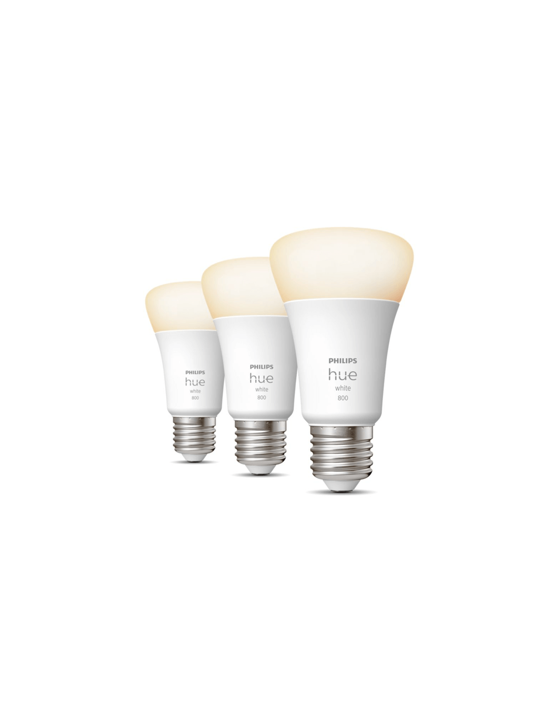 Cada una de las bombillas Philips HueW de 9W ofrece un flujo luminoso de 800 lúmenes para proporcionar una temperatura de color blanca suave muy agradable de 2.700K.