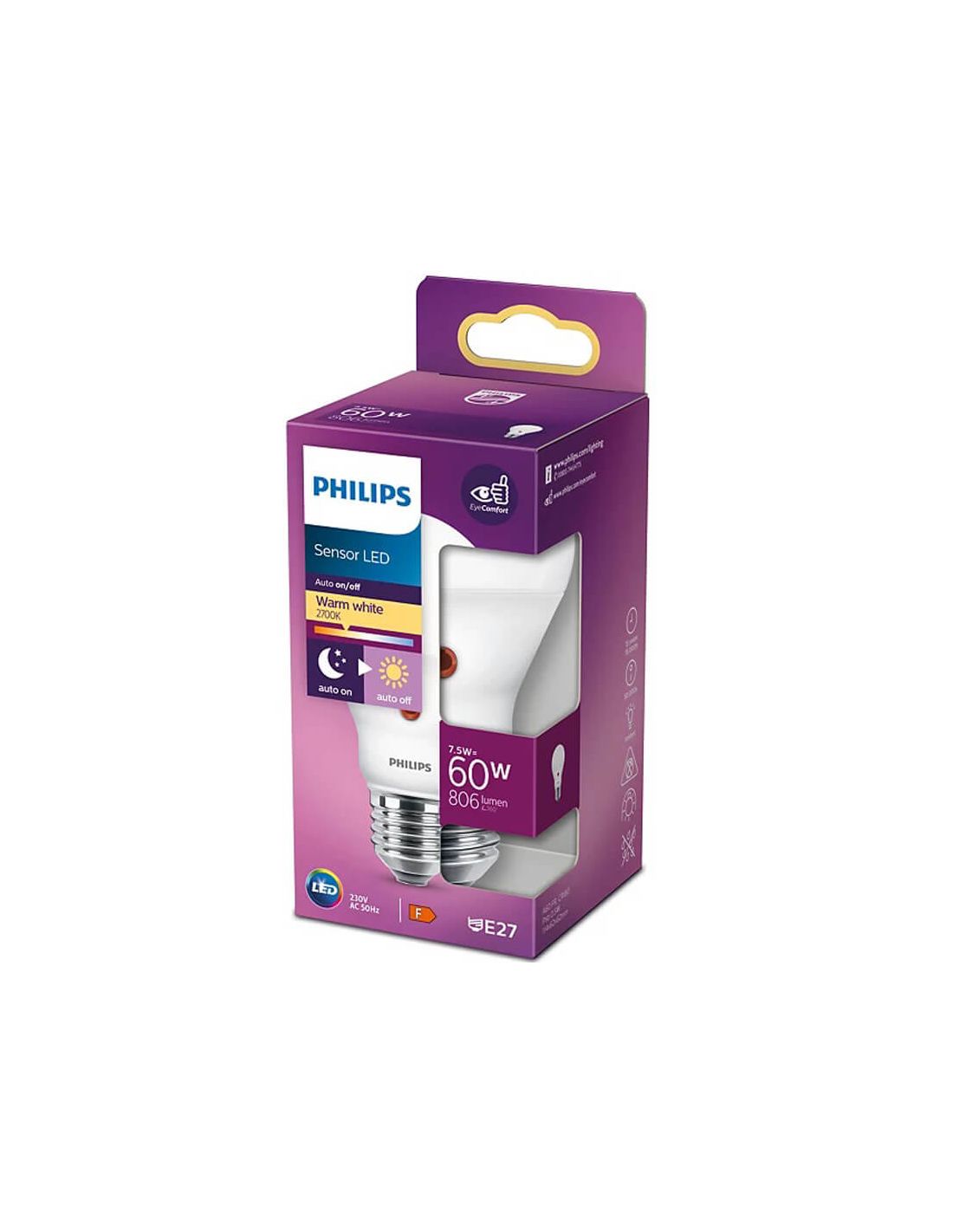 La bombilla LED "Del Crepúsculo al Amanecer" de Philips es la solución perfecta para quienes buscan iluminación eficiente y segura. Gracias a su sensor de luz integrado, esta bombilla se enciende automáticamente al anochecer y se apaga al amanecer, optimizando el consumo energético y asegurando una luz constante cuando más lo necesitas.