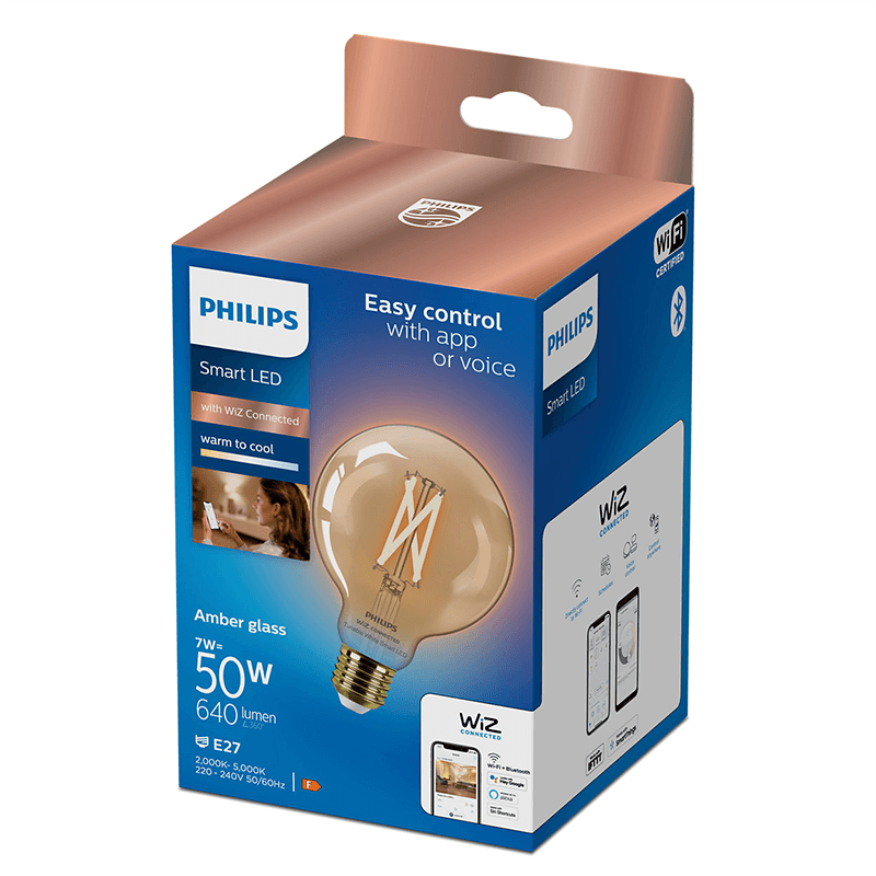 Este producto cuenta con la aplicación WiZ y está disponible tanto para dispositivos iOS como Android. Además, ello permite regular las luces con el nivel de brillo que desees ya sea con tu smartphone, el WiZmote o con tu voz. Así, te permite seleccionar entre una amplia variedad de luces blancas frías energizantes hasta luces blancas cálidas, gracias a una temperatura de color 2000-5000 K con un flujo de 640 lúmenes y una potencia de 7W.