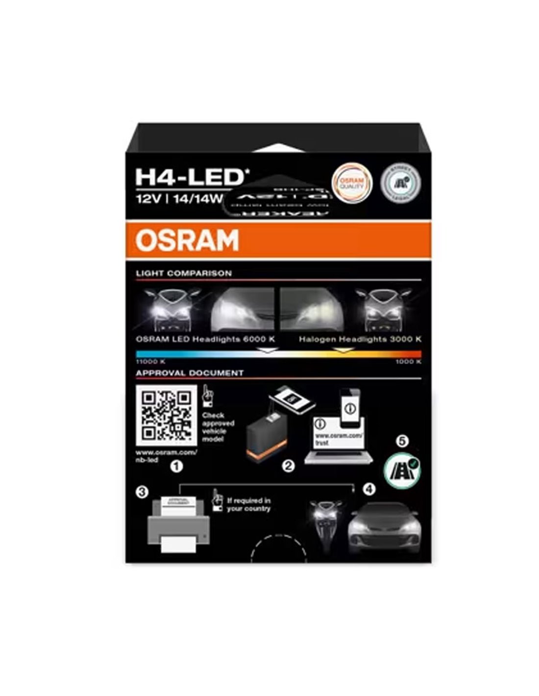 Esta lámpara H4 LED es homologada para su uso en vía pública solo en los países, vehículos y funciones que aparecen en la lista oficial de OSRAM. Sigue estos pasos antes de comprar: