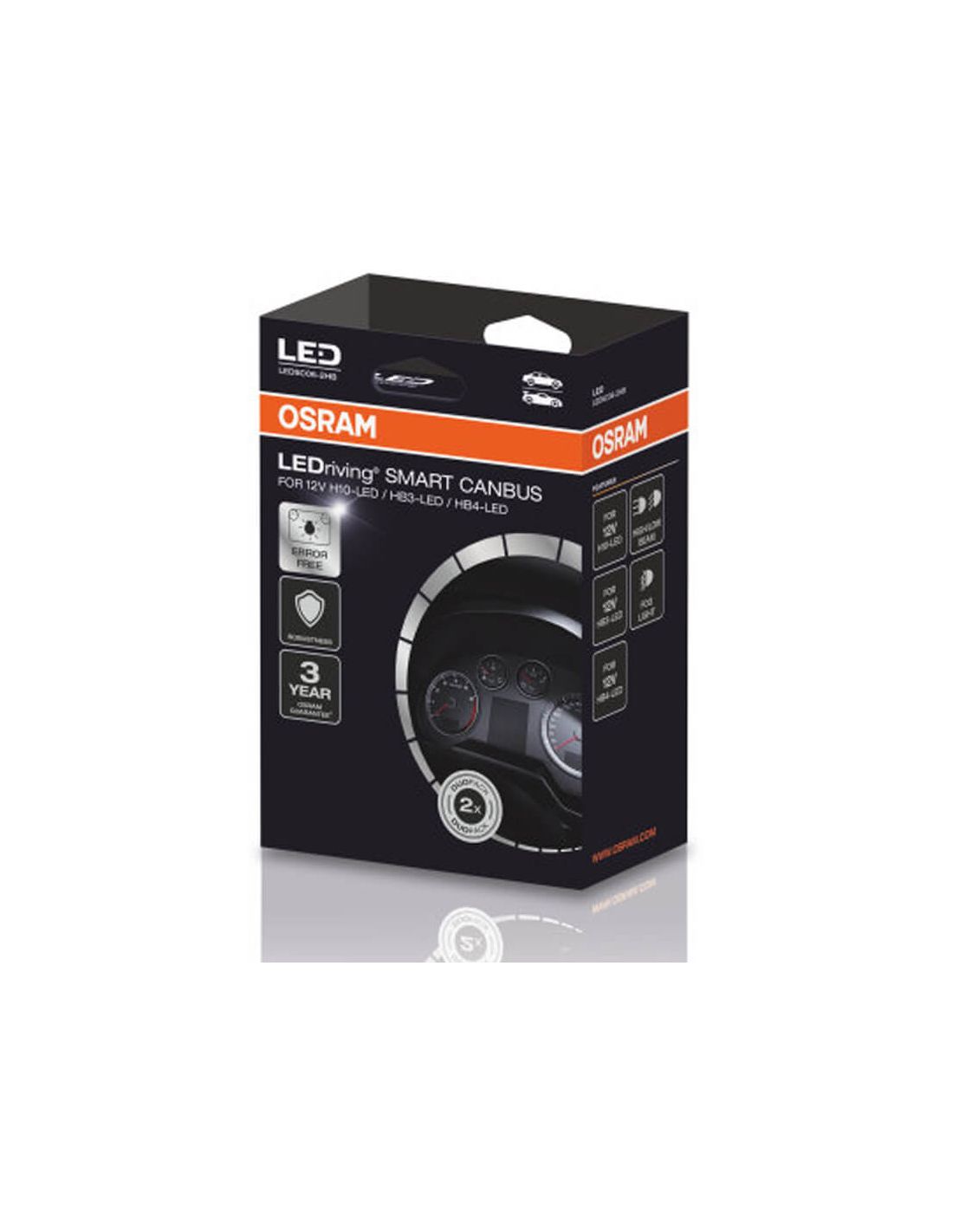 CanBus y cancelador para vehículos específicos de la marca Osram Smart Canbus Error Canceller con referencia LEDSC06 para Bombillas LED H10, HB3 y HB4 de Osram, compruebe la compatibilidad con su vehículo en las fotos o en la web de Osram. Valido para Bombillas LED de carretera, cruce y antiniebla, incluye conector para estas Bombillas.