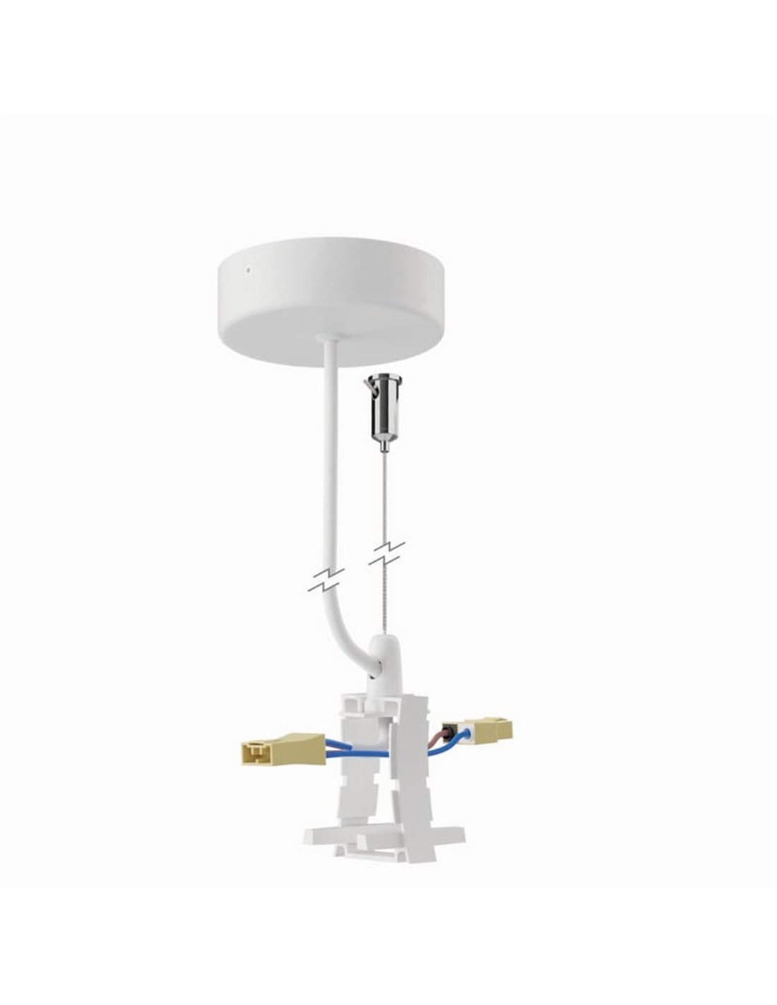 La Conexión Intermedia con Cable de Alimentación y Florón HANOK Blanco es un accesorio imprescindible para la instalación del Módulo Lineal LED HANOK 38W 50º en color blanco. Este accesorio asegura una conexión eléctrica segura y estética, facilitando una instalación limpia y profesional del módulo LED.