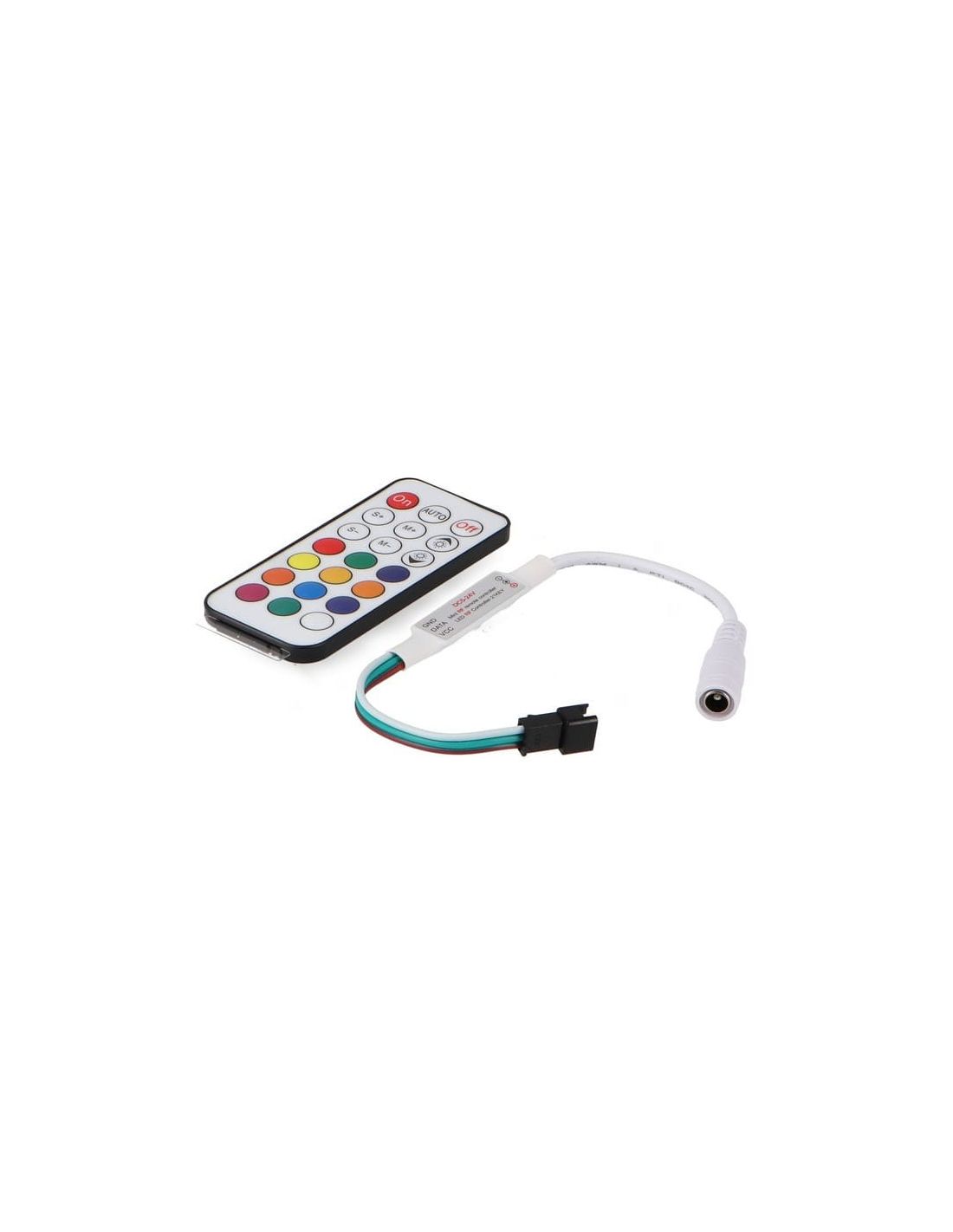 Controlador Mini Colorful para tiras LED digitales, diseñado para gestionar cambios de color y efectos dinámicos de forma sencilla. Solución compacta e ideal para iluminación decorativa RGB digital en interiores. Formato reducido para instalaciones discretas.