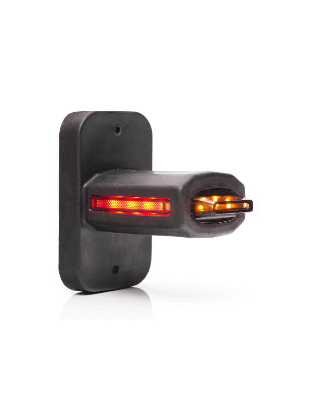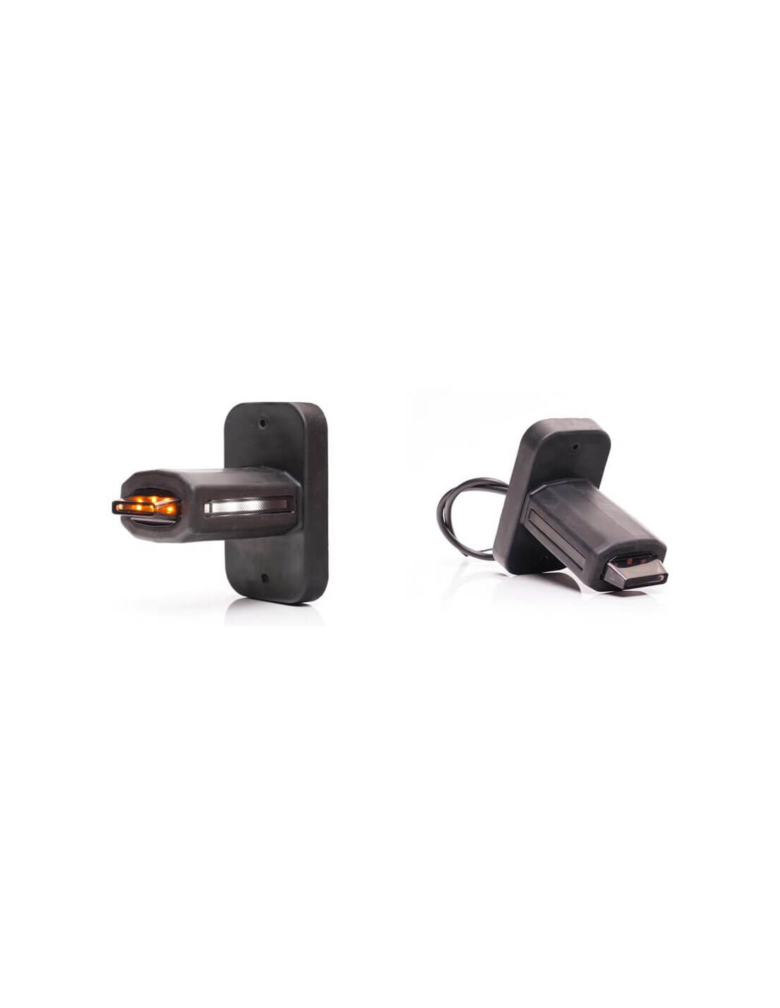 Este galibo LED sobresaliente de 18,5 cm de la gama W269.3.1 de WAS ofrece una solución fiable, resistente y estética para la señalización de camiones, remolques y vehículos industriales. Su diseño con logo integrado, luz ámbar lateral sobresaliente, junto con iluminación blanca delantera y roja trasera, garantiza la visibilidad del vehículo desde todos los ángulos.
