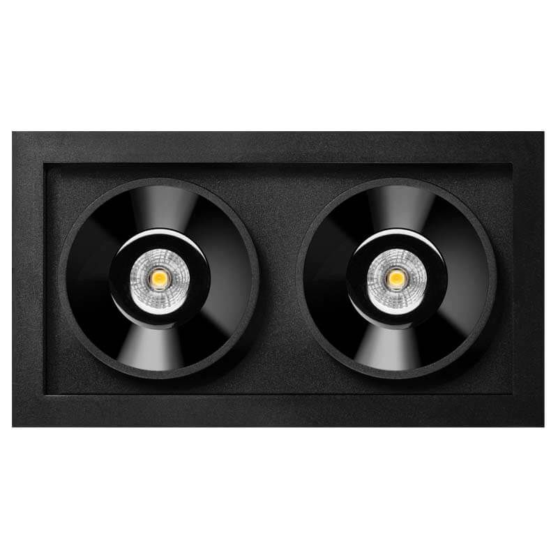 Downlight LED empotrable Negro Mate Black Foster Reccessed 2 con forma rectangular, entre los 2 focos ofrece una potencia de 4,2w, una intensidad de luz de 500Lm, esta disponible en 3 tonalidades de luz, 2700K, 3000K, 4000K y en 3 colores distintos: Negro, Blanco y Negro y Negro y dorado.