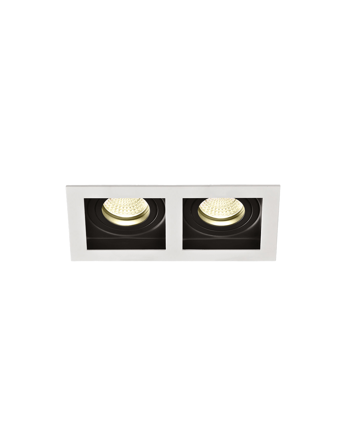 El aplique SAN para 2 luces con sistema empotrable funciona con dos bombillas LED GU10 a 8W de potencia para proporcionar su particular propuesta iluminativa para el hogar. Para ofrecer la máxima resistencia, el producto cuenta con certificación IP20 e IK06 frente a sólidos.