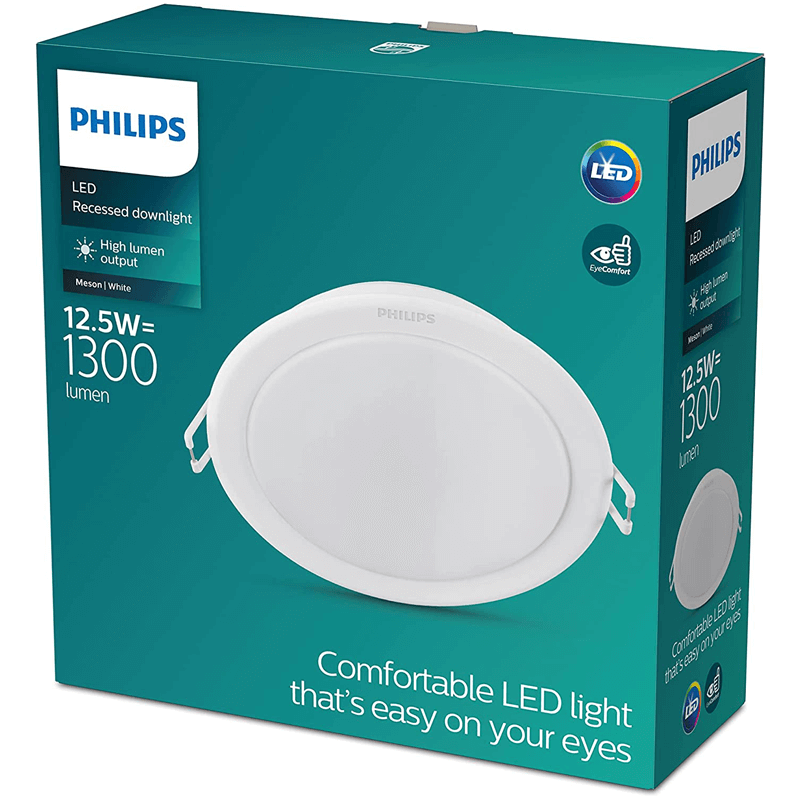 El Downlight LED Philips Meson 12,5W es una solución fiable y versátil para iluminación interior empotrada. Su diseño redondo y perfil discreto lo hacen ideal para instalaciones nuevas o sustituciones, ofreciendo una luz homogénea con bajo deslumbramiento gracias a la tecnología EyeComfort.