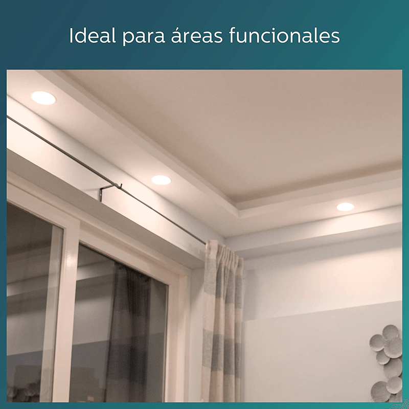 El Downlight LED Philips Meson 5,5W es una solución compacta para techo diseñada para proporcionar una iluminación agradable y eficiente en espacios interiores. Incorpora EyeComfort y una óptica que ayuda a conseguir una luz más uniforme, con menor deslumbramiento, ideal para zonas de uso diario.