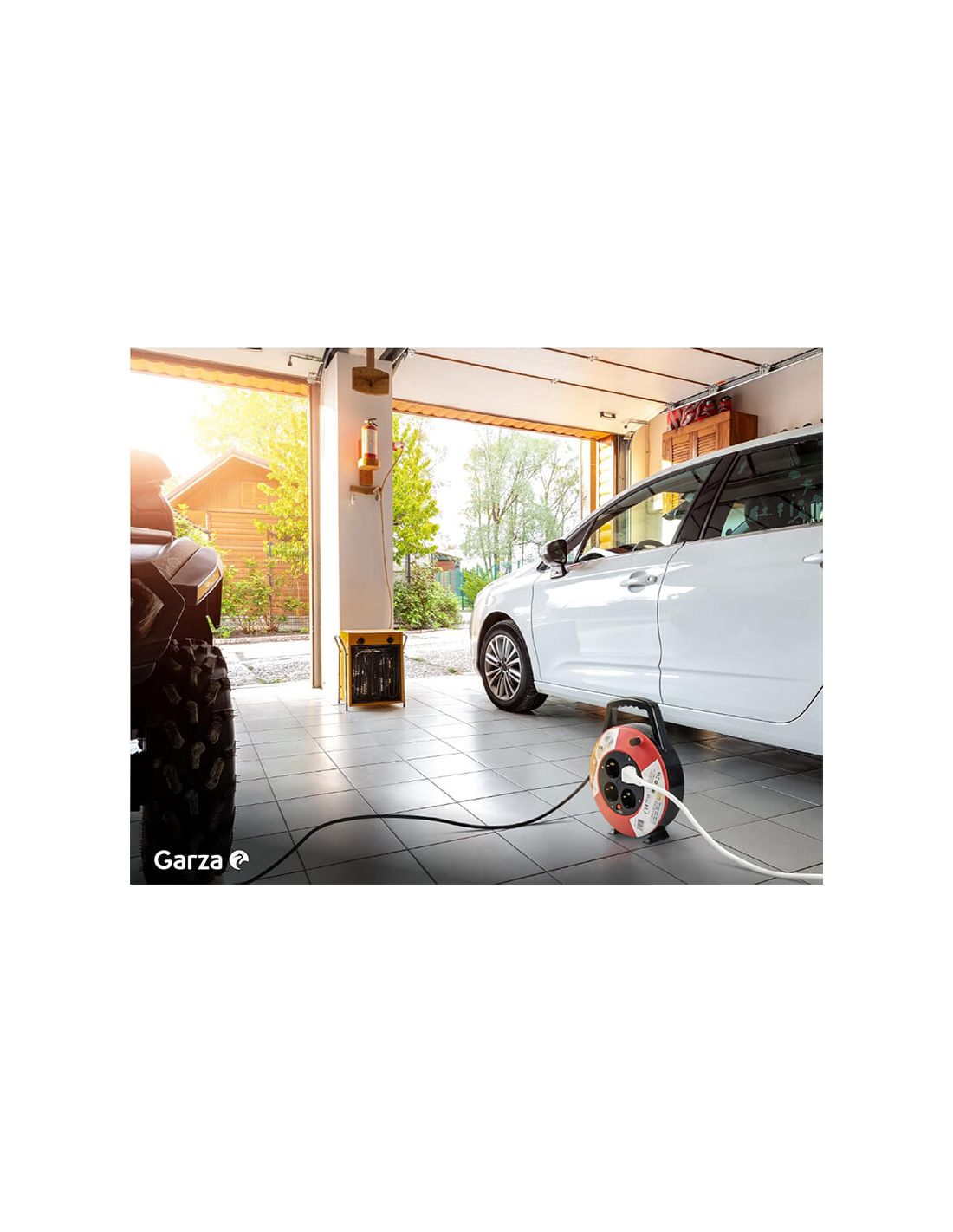 El enrollacables doméstico Garza Power 5 m es la solución perfecta para quienes buscan un alargador compacto, seguro y fácil de transportar. Gracias a su diseño ergonómico con asa incorporada, sus 4 tomas Schuko protegidas y su cable de 5 metros, es ideal para el hogar, oficinas, talleres, caravanas o zonas de trabajo donde necesites extender la corriente con total seguridad.