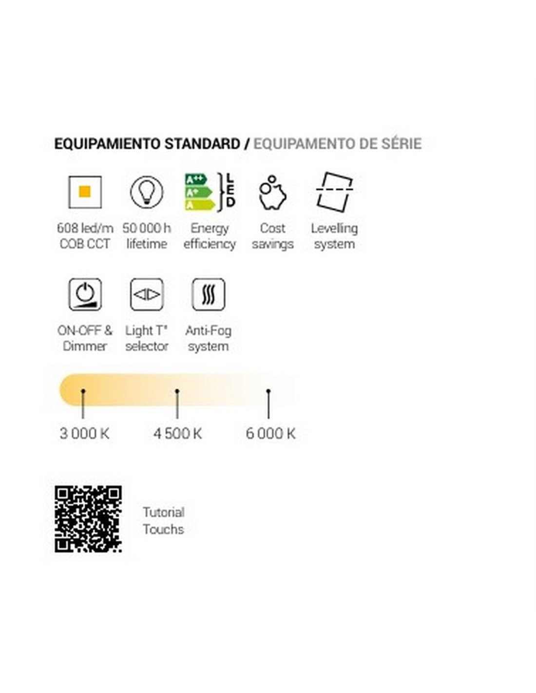 - Efecto luz continua en tres temperaturas: 3000K, 4500K y 6000K.