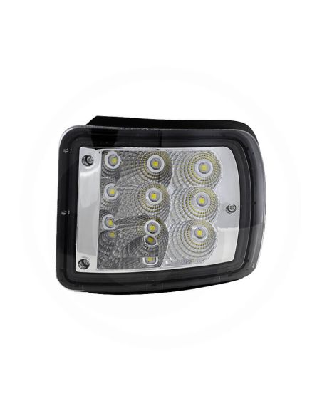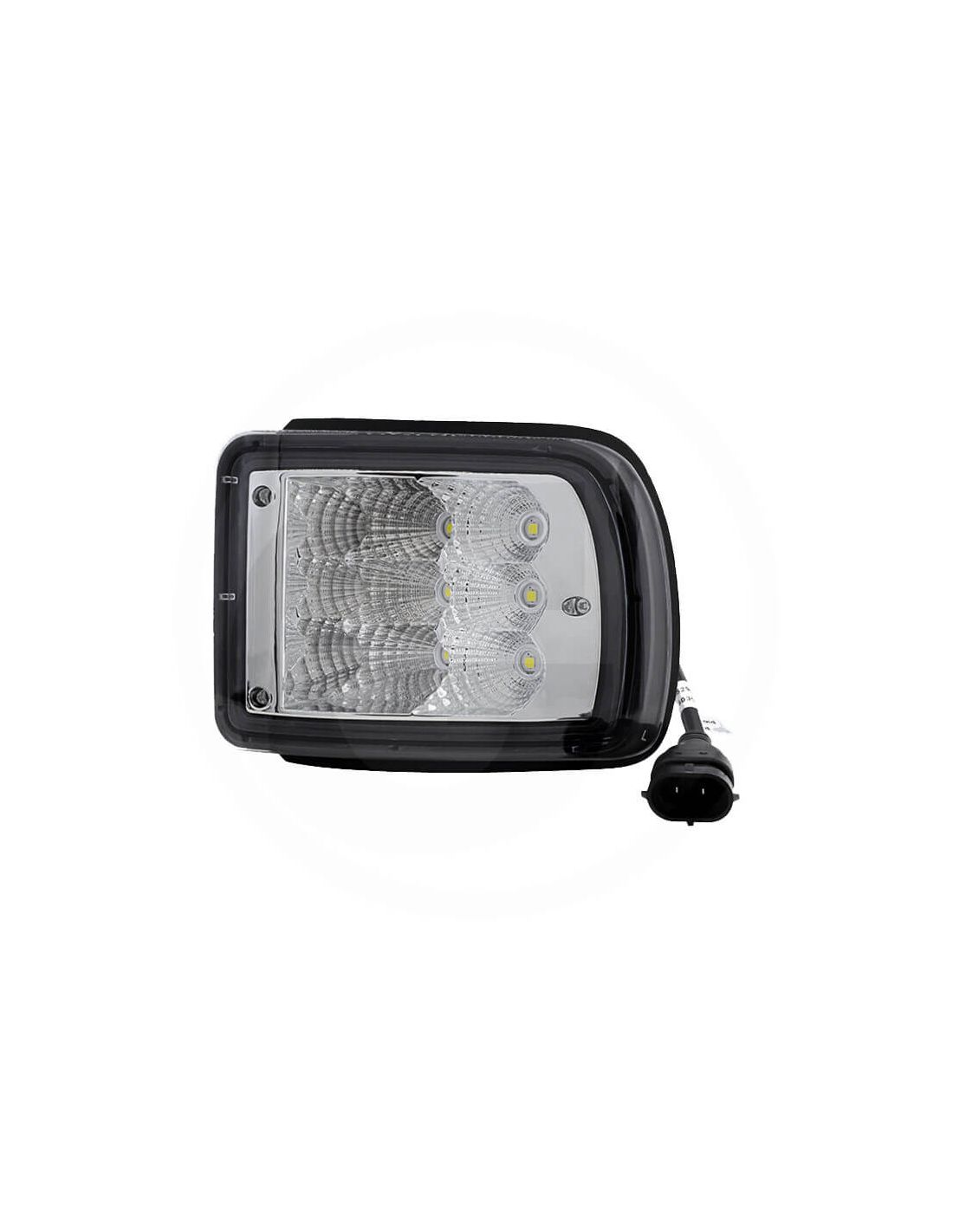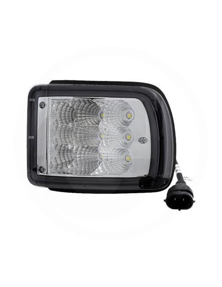 Faro de trabajo cunetero LED 20W con 3.000 lúmenes y conector H11, compatible con tractores John Deere de las series 20, 30 y 5M. Sustituye a los faros laterales originales para iluminar cunetas, lindes y periferia del apero con un haz ancho y uniforme. Instalación plug and play en el punto original, sin cortes de cable. Carcasa en aluminio, lente de alto rendimiento y disipación térmica eficiente para uso profesional. Ideal para labores nocturnas o en baja visibilidad, mejorando seguridad y productividad con bajo consumo.