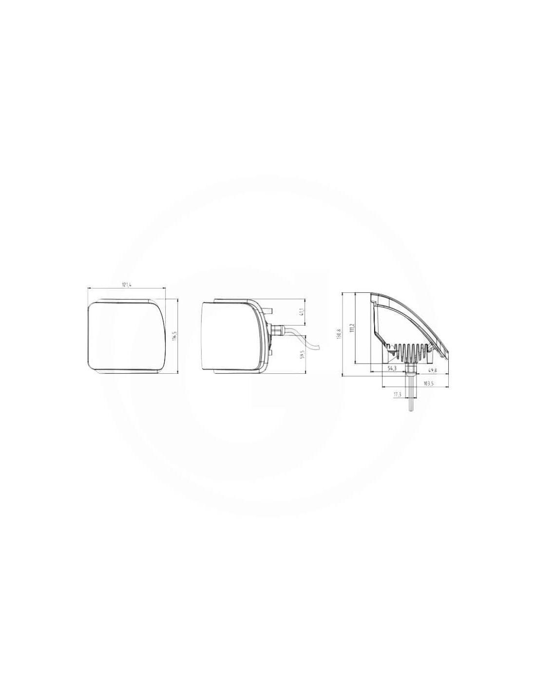 Faro LED empotrable para posiciones laterales cuneteras de John Deere. Aporta 3.000 lúmenes con 20W, 9–32 V, IP67 y EMC R10, con cable y conector H11 para un reemplazo plug and play en el punto original.