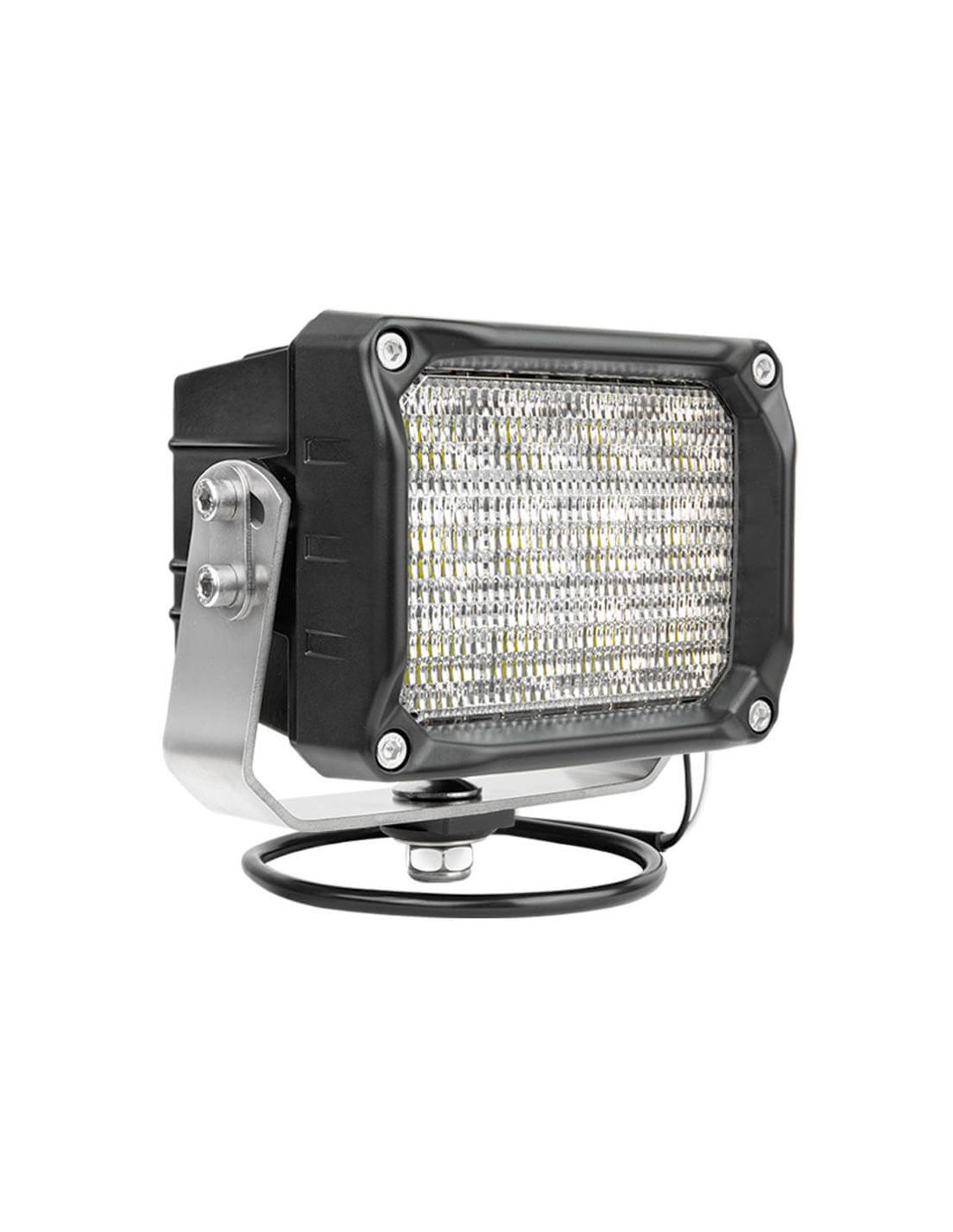 Faro de trabajo LED profesional 100W con 10.000 lúmenes y óptica 60°. Rectangular, 12V-24V, soporte acero inoxidable reforzado, cable 0,5 m. Totalmente estanco, sumergible y preparado para maquinaria pesada.
