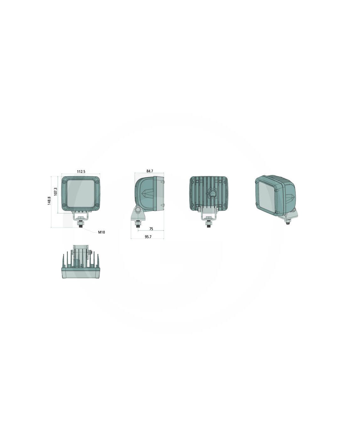 Faro LED de trabajo cuadrado con conexión DEUTSCH DT 2P, 36W, 3000 lúmenes reales, carcasa de aluminio e IP6K9K. Compatible con tractores Fendt.