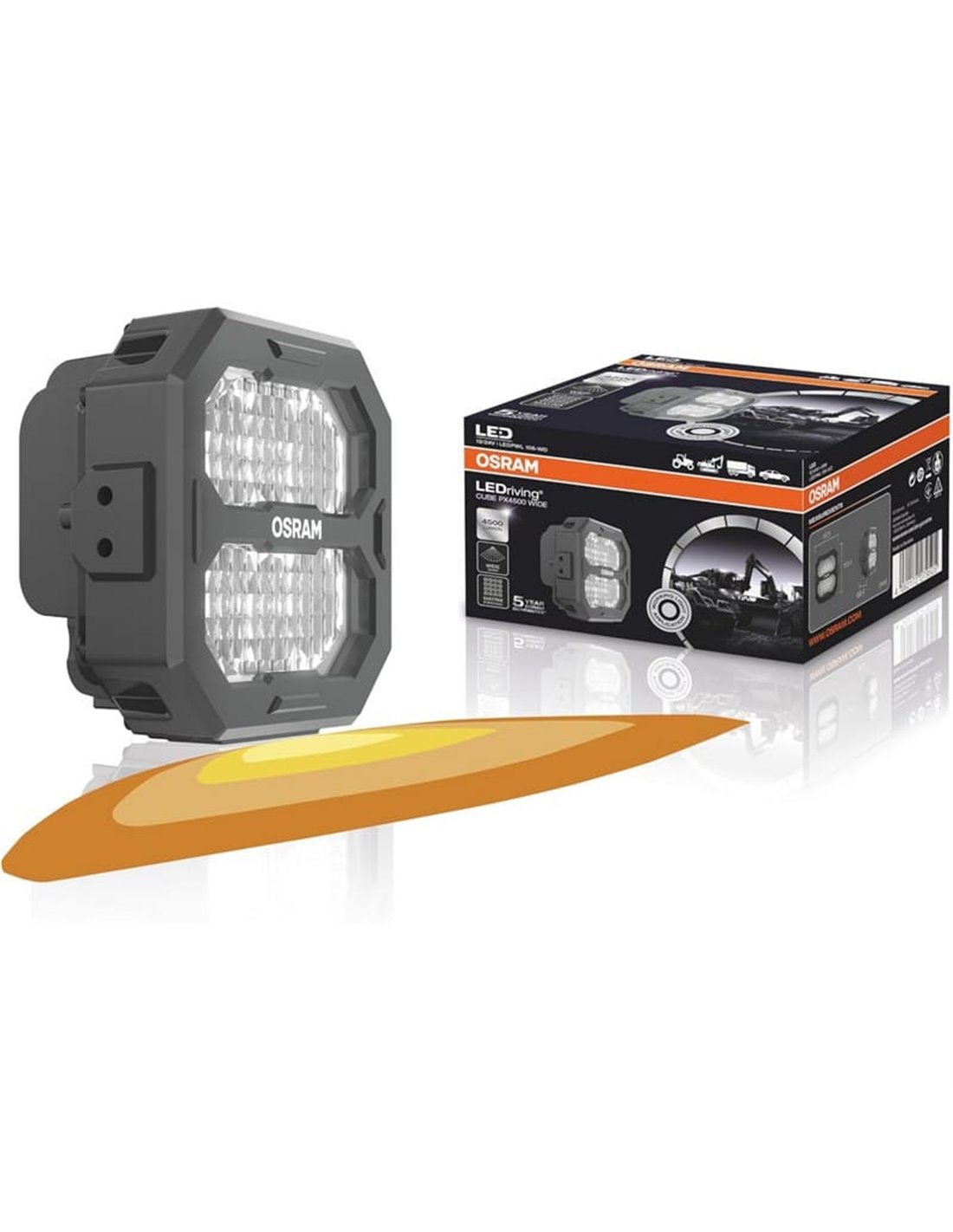 El faro LED OSRAM LEDPWL106-WD de la serie LEDriving CUBE PX4500 Wide es la opción perfecta para quienes necesitan una iluminación de gran cobertura en trabajos profesionales. Su haz Wide ilumina áreas amplias con un alcance de hasta 60 metros, equilibrando amplitud y distancia.