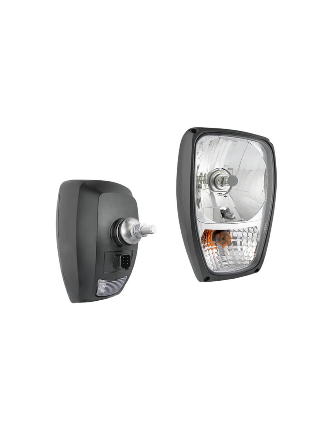 Gracias a su diseño simétrico, el faro puede instalarse tanto en el lado izquierdo como en el derecho del vehículo. Además, admite montaje vertical u horizontal, adaptándose fácilmente a diferentes configuraciones de maquinaria. Su conector Deutsch de 6 pines (hembra no incluida) garantiza una conexión eléctrica segura y resistente a vibraciones.
