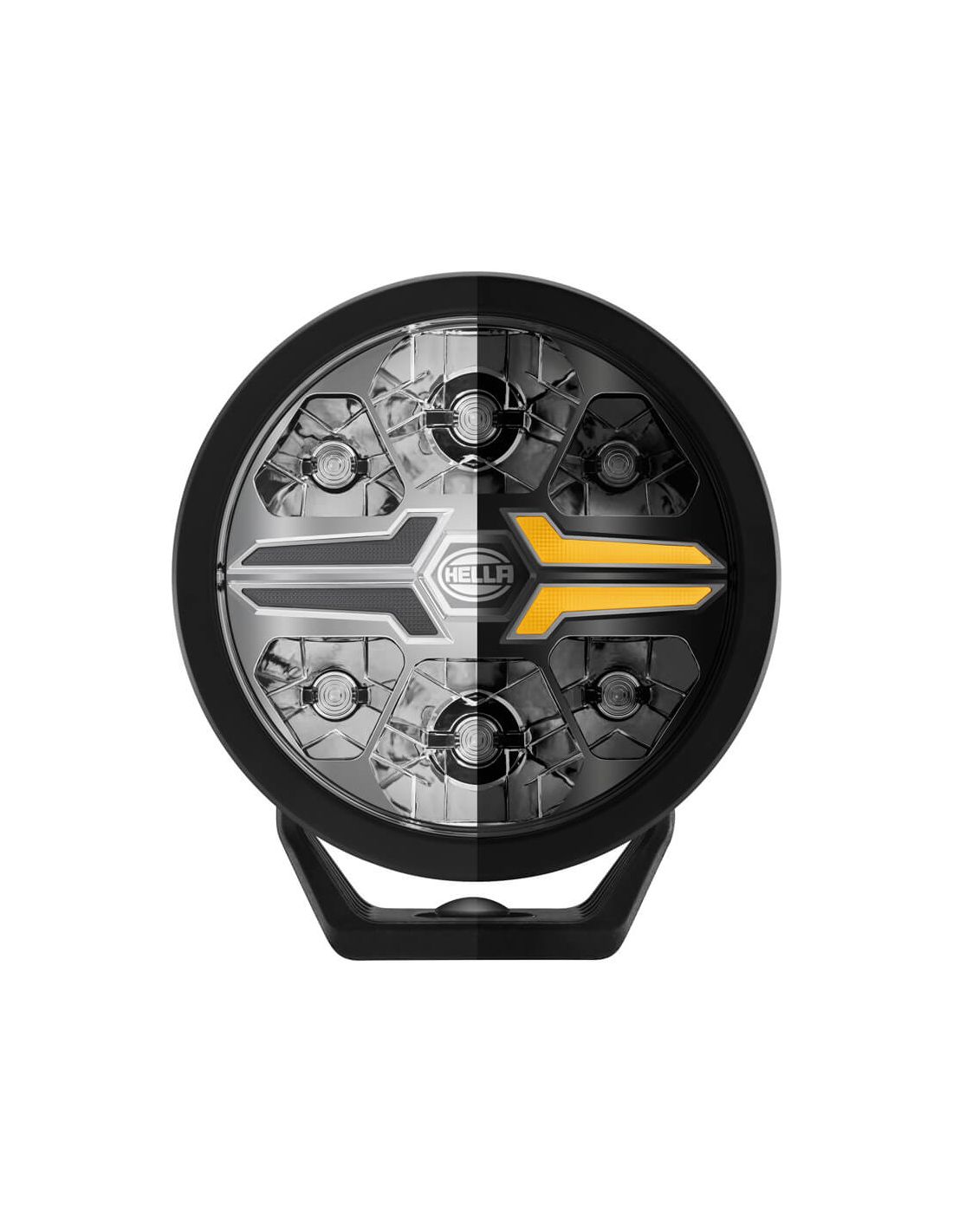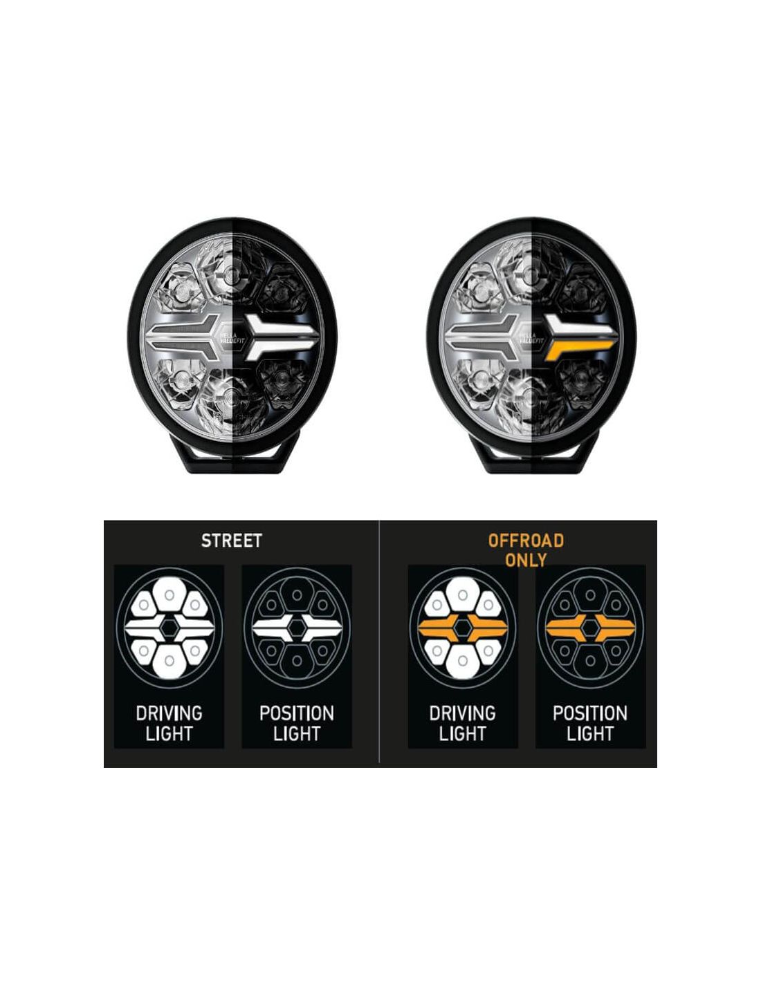 Faro LED negro de largo alcance Homologado modelo Blade con un diámetro de 22Cm Ø, para instalar en la parte delantera de los automóviles, 4x4, OffRoad y camiones con una potencia de 17W valido para 12V y 24V (1,35A - 0,68A), incluye luz de posición blanca Homologada y Ambar (Off-Road), se puede conectar mediante el cable que incluye 5 metros.