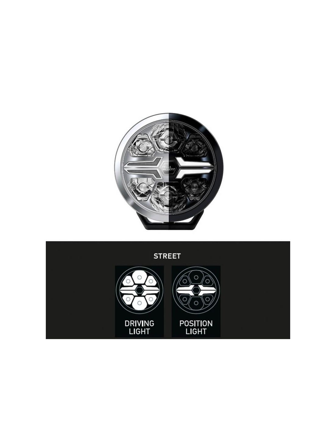 Faro LED 9 pulgadas de largo alcance Homologado modelo Blade con un diámetro de 22Cm Ø, para instalar en la parte delantera de los automóviles, 4x4, OffRoad y camiones con una potencia de 17W valido para 12V y 24V (1,35A - 0,68A), incluye luz de posición blanca Homologada, se puede conectar mediante el cable que incluye 5 metros.