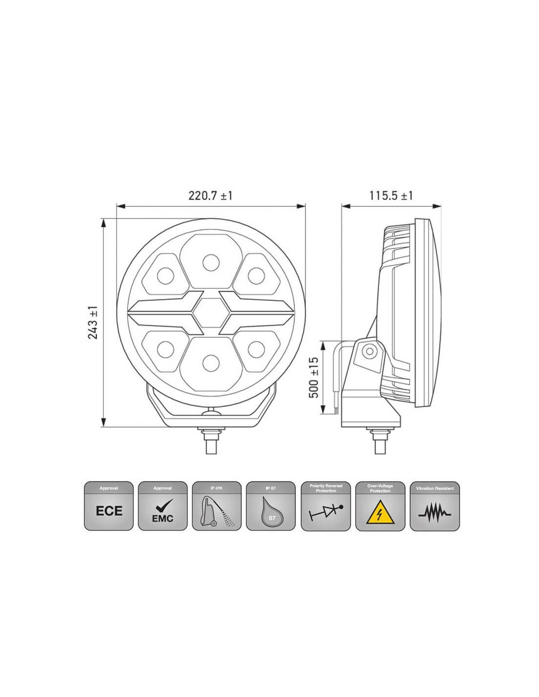 Incluye: Faro LED redondo Homologado 9", con 5 metros de cable y manual de instrucciones.