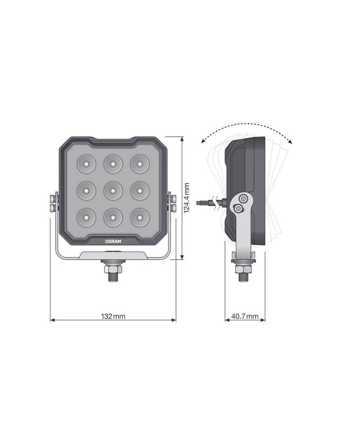 El Faro LED de trabajo LED cuadrado de Osram esta compuesto por 9 Leds de alta potencia de la marca Osram, puede ser instalado en voltajes desde 12V hasta 24V. Su estructura esta fabricada en aluminio con un difusor de luz de policarbonato de alta calidad que soporte las radiaciones solares y las inclemencias climatologías sin sufrir desperfectos con el paso del tiempo, el soporte de acero Inox es muy resistente ya que sujeta al Faro por ambos lados. La intensidad de luz de este Faro LED tiene un alcance de mas de 67 metros de distancia con 1 Lux.