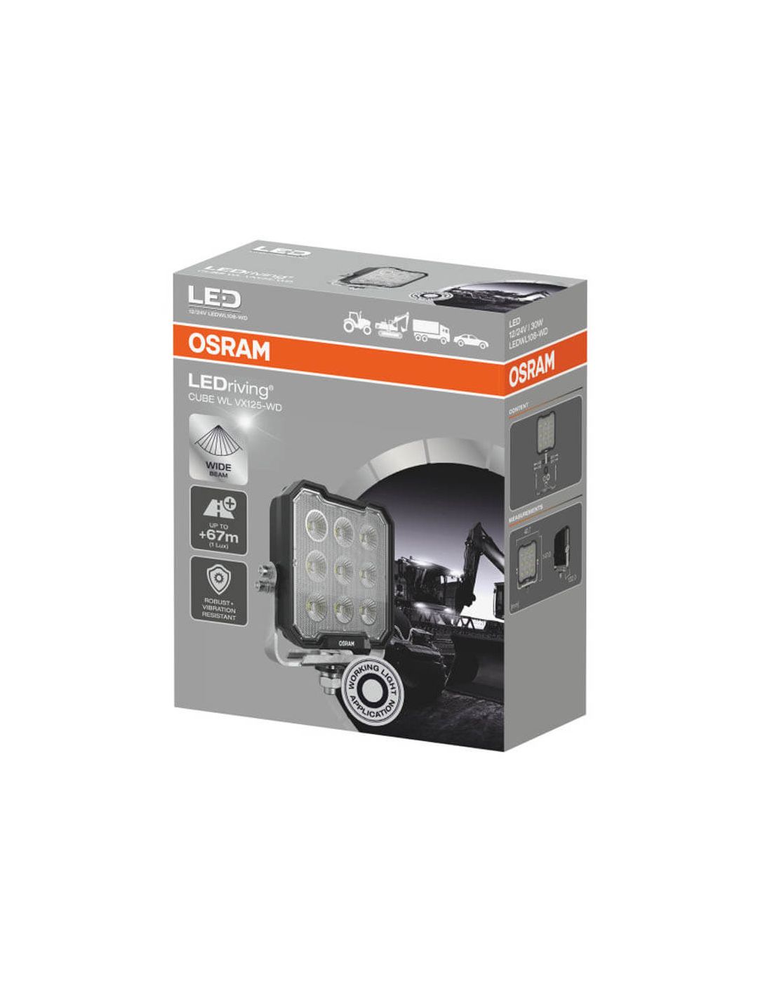 Potente Faro LED cuadrado con óptica de trabajo ´Wide Beam` una potencia de 30W, una intensidad de luz máxima de 3.000Lm y un tono de luz blanco de 6000K, el nuevo Faro LED Cube VX125-WD Osram cumple con todos los estándares para este tipo de producto, su óptica de luz es de campo ancho ofreciendo un alcance de haz de luz de mas de67 metros de alcance. Este Faro LED Osram Cube VX125-WD LEDWL108-WD se pueden instalar tanto en 12 Voltios como en 24 Voltios e incluye todo lo necesario para se instalado.