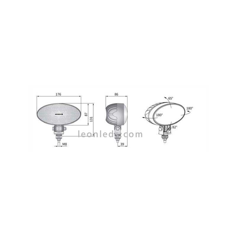 (Medidas Faro de Trabajo Ovalado Horizontal LED)