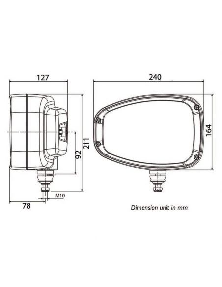Este modelo de Faro delantero es un Faro original de recambio Oem de Maquinas de la marca Manitou, grupo CNH, Bobcat, Hyundai, Massey Ferguson, Weidemann y Giant.