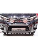 En el centro del Faro LED Homologado para 4X4 incluye 2 franjas, estás se encienden como luz de posición, dando un toque distinto y muy elegante al faro, ademas con la tapa protectora instalada se pueden ver gracias a un plástico transparentes. Puede ser instalado en la defensa de nuestro Vehículo 4X4 o en la barra de acero inoxidable de un Camión.