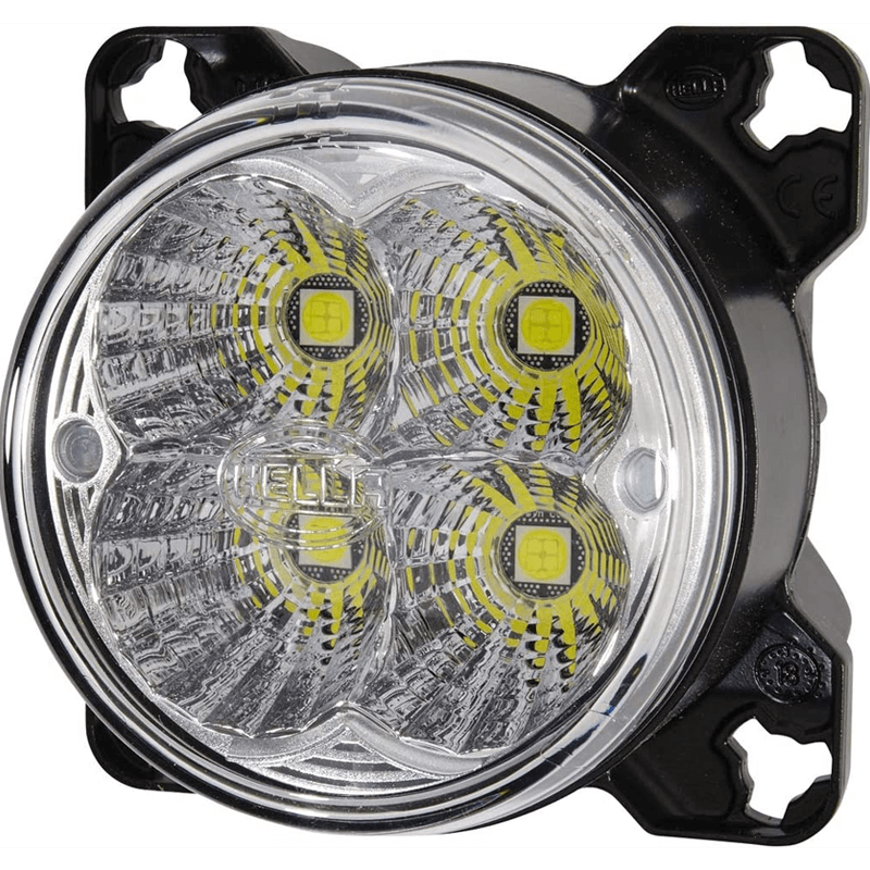 Faro LED redondo empotrable con optica de largo alcance, una potencia de 42W y una intensidad de luz de 3.800Lm, este Faro LED redondo es el reemplazo directo de los Faros LED de marcas como Fendt, Class Case y JCB, no necesita realizar ninguna modificación adicional, incluye conector Detsch 2 Pin. Cuenta con el CISPR25 Class 3 que garantiza que no emite radiofrecuencias en la radio ni emisora. Modelo original de la marca Hella.