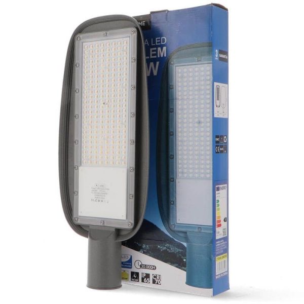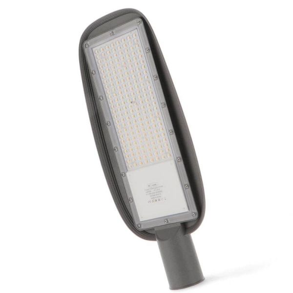 Farola LED de 150W de para iluminación exterior, 16500 lm, IP65, IK08, ángulo 140°x65°, vida útil de 30,000 horas, eficiencia de 110 lm/W. Alta durabilidad y rendimiento.