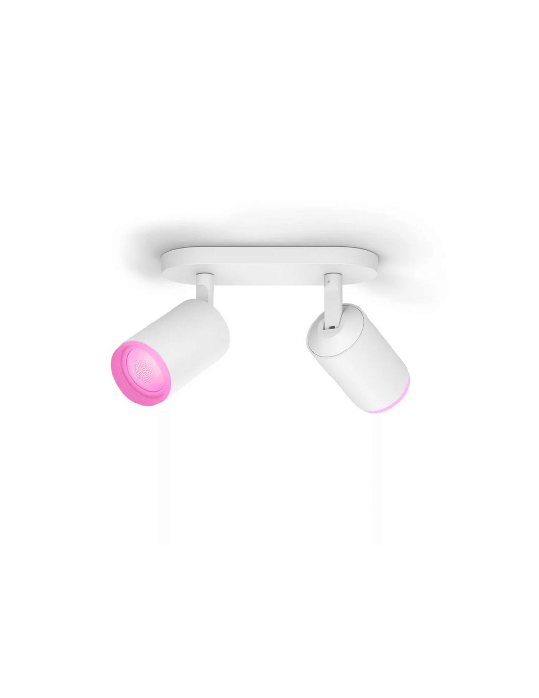 El Foco Inteligente de 2 Luces LED FUGATO combina tecnología avanzada y diseño elegante para ofrecer una experiencia de iluminación versátil. Permite ajustar la temperatura de color desde una cálida luz de 2000K hasta una fría de 6500K, además de acceder a una amplia gama de colores gracias a la tecnología Hue White and Color Ambiance. Sus dos focos orientables facilitan la dirección de la luz hacia áreas específicas, adaptándose a tus preferencias y necesidades.