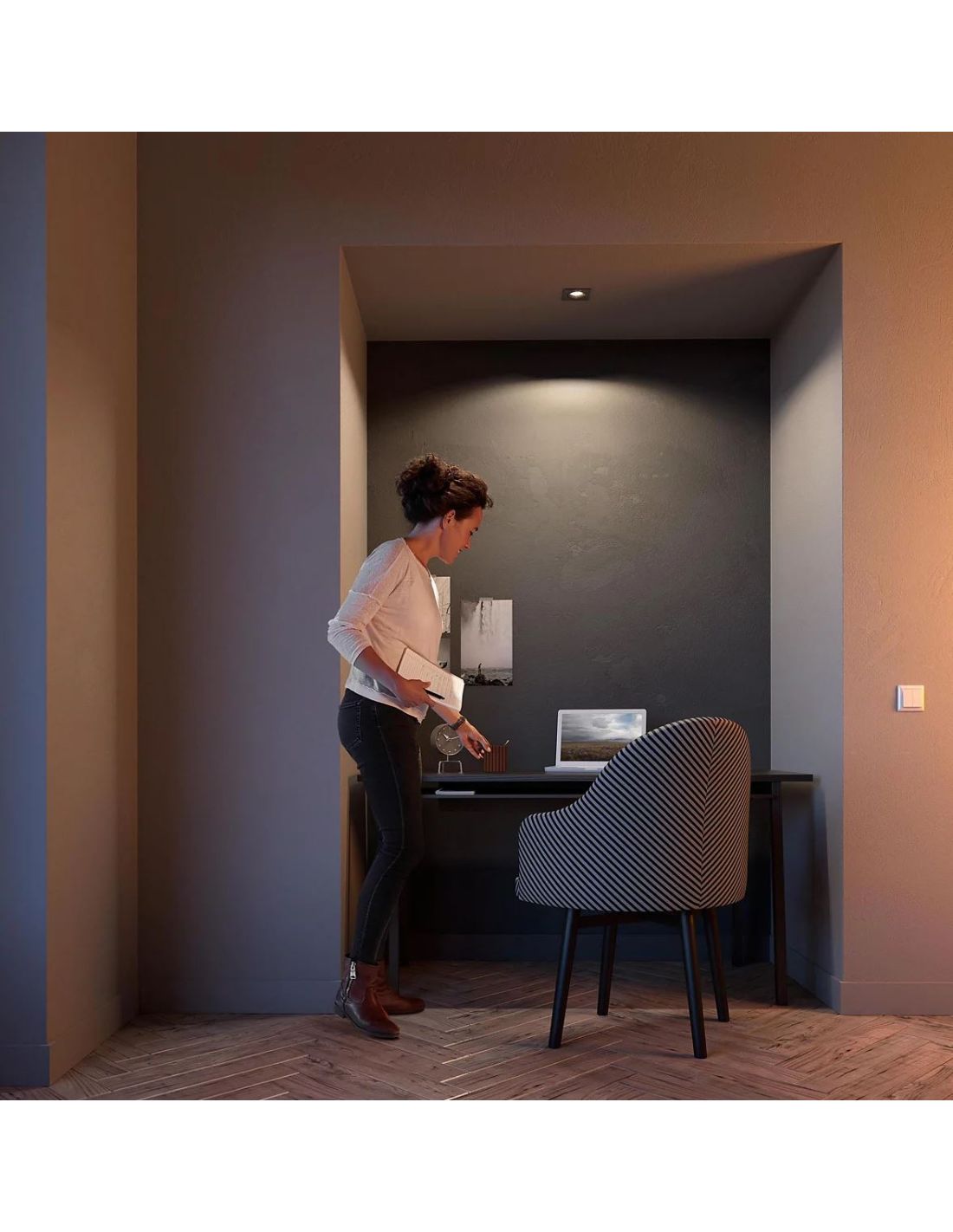 La sustitución de la bombilla GU10 es sencilla gracias al nuevo aro fácil de usar, que permite una instalación sin esfuerzo. Además, el material de la superficie especial sin polvo ni óxido del foco empotrable minimiza la acumulación de suciedad y garantiza una larga duración del producto.