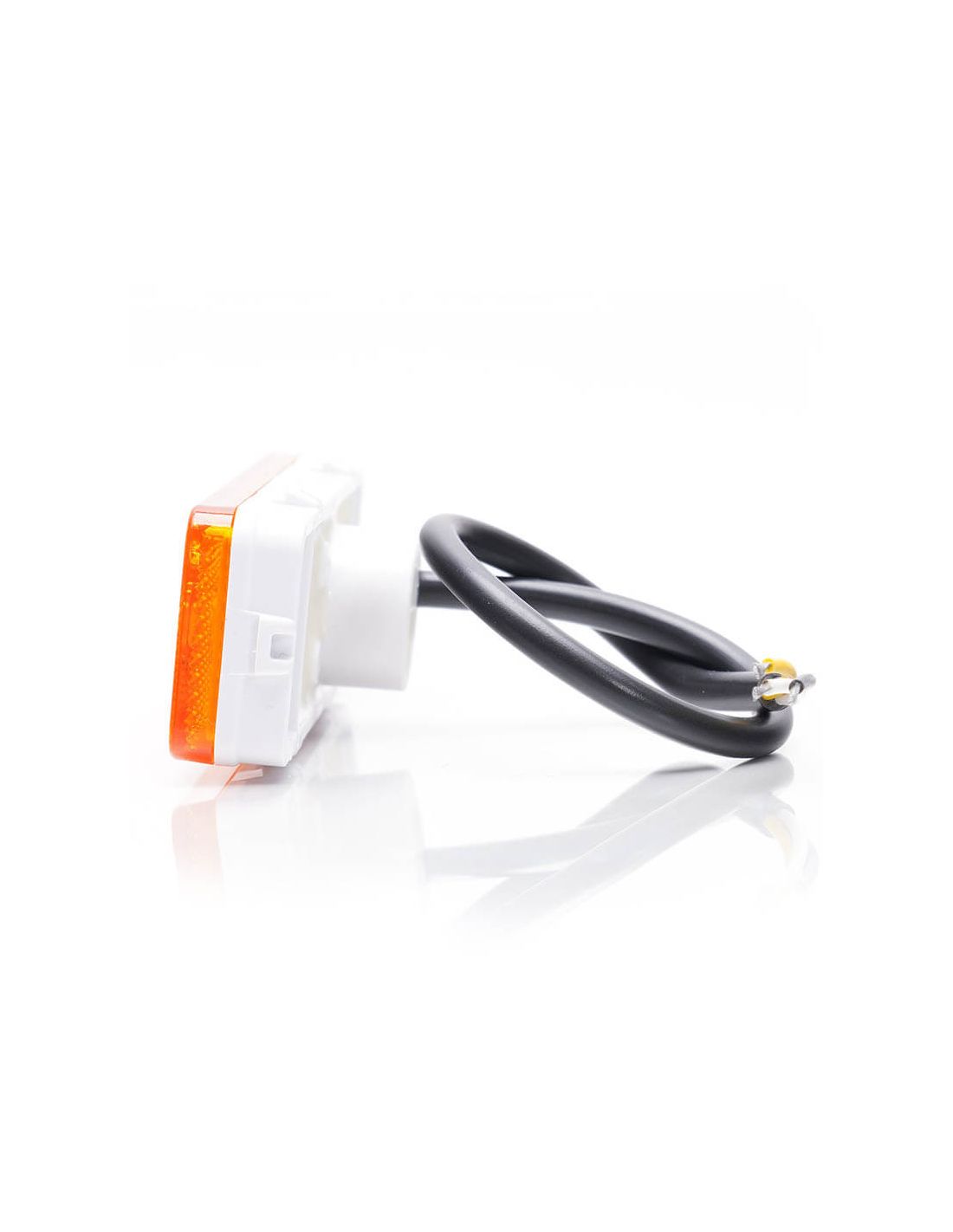 Este Galibo Lateral LED es valido para instalar en 12V y en 24V, es totalmente estanco y sumergible. Incluye 24Cm de cable de 3 hilos para conectar este Piloto LED, Masa cable blanco, Positivo para Luz Lateral cable negro y Cable ambar para el intermitente. Las dimensiones se pueden ver en una de las fotos.