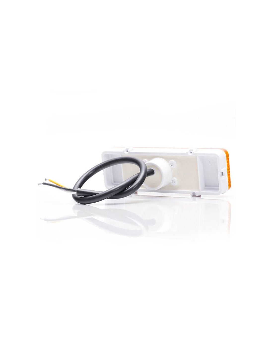 Galibo LED Lateral con forma rectangular con Reflectante y intermitente lateral, cuenta con las Homologaciones SM1, Cat 5 y IA, es valido para instalar en superficie o suspendido con el soporte que incluye. Este modelo de Galibo LED W254 cuenta con el Holograma de Was que se ilumina en color ambar.