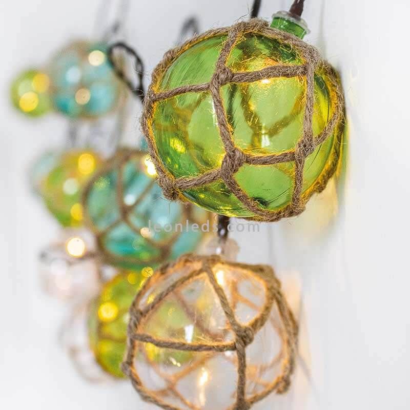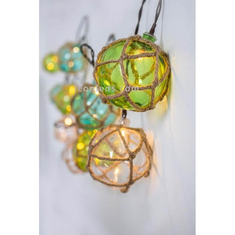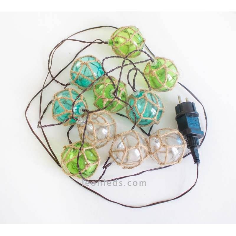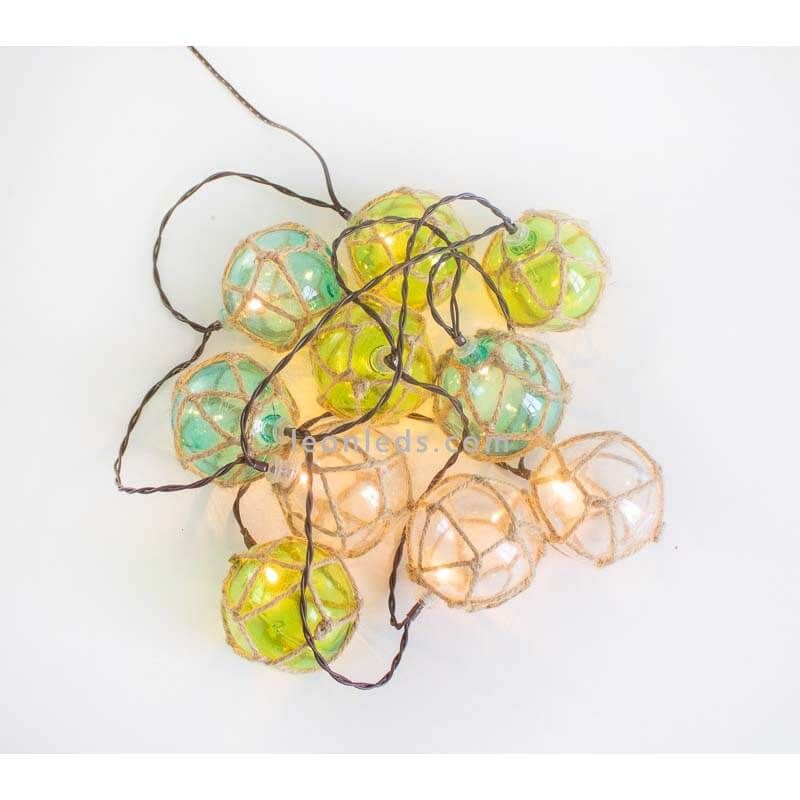 Estas guirnaldas para exterior Mare tiene unos colores mediterráneos que asemejan el mar, ya que predominan los blancos, verdes y azules. Gracias a sus materiales naturales estas guirnaldas son la mejor opción para embellecer y alumbrar cualquier espacio en primavera y verano.