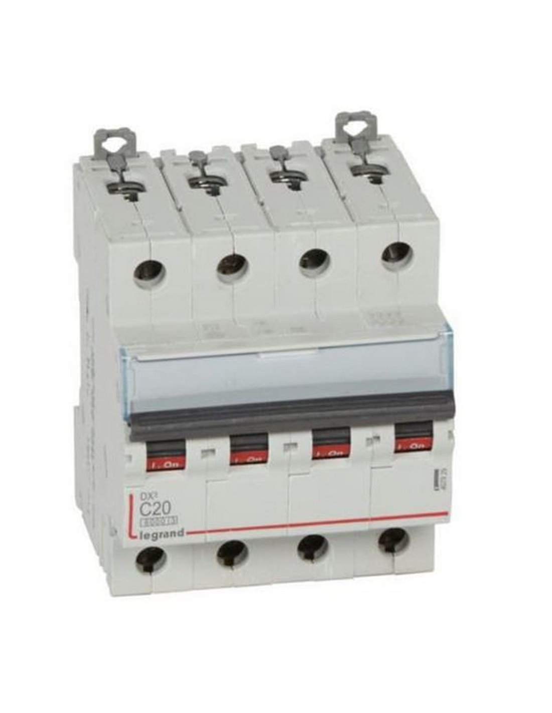 El Legrand DX³ 4P (tetrapolar) 20 A protege líneas frente a sobrecargas y cortocircuitos en 400 V AC. Con poder de corte 6 kA (IEC/EN 60898-1) y limitación de energía clase 3, minimiza los esfuerzos térmicos y mecánicos sobre el cableado. Incorpora bornes IP20 para mayor seguridad, indicador ON/OFF visible y portaetiquetas para identificar cada circuito.