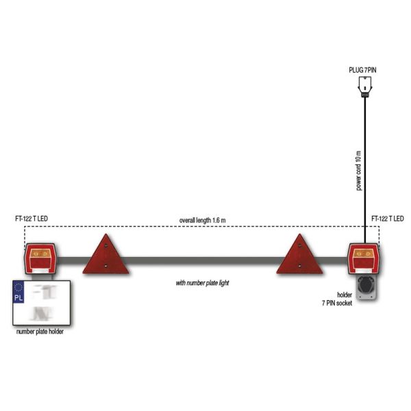 Kit 2 Pilotos Traseros Cuadrados FT-122 T para remolque con 4 funciones, luz de matricula, posición, freno e intermitente, barra fija con una longitud de 160Cm y extensible hasta 210Cm de máximo, seleccionar la que se ajusta a tu instalación.