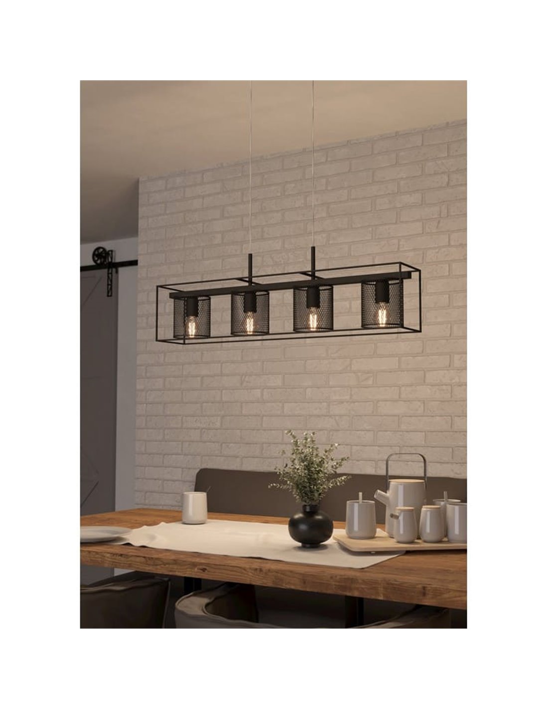 Lámpara Colgante EGLO CATTERICK con 4 Pantallas de Alambre Negro