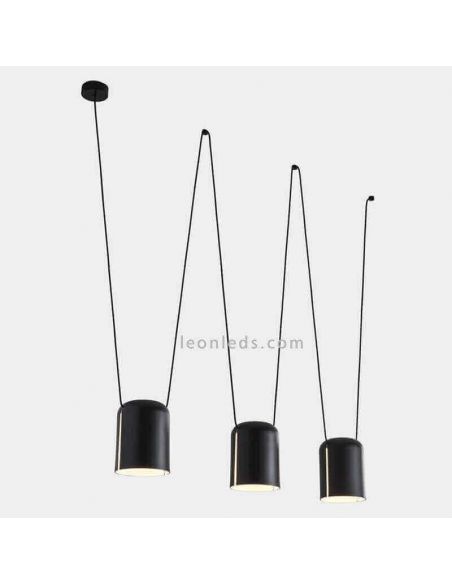 Es una lámpara de techo colgante con estilo moderno y contemporáneo que aportará presencia y elegancia a tus decoraciones. Necesita de la instalación de 3 bombillas E27 con 23W máximo de potencia y una medida máxima de 120/100 mm (no incluidas). Sus pantallas quedan suspendidas de un cable de color negro y dispone de punto de luz lateral perfecto para espacios que no disponen de punto de luz central, permitiéndonos personalizar el lugar desde el que se emitirá la luz sin necesidad de seguir el punto de luz del techo. Podemo desplazar cuanto queramos el punto de luz de la lámpara, junto a los embellecedores negros podemos personalizar la forma de la lámpara y su longitud y altura.