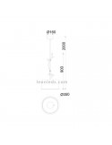 La lámpara tiene una pantalla de 35CM de diámetro, además se puede regular en altura desde los 90CM hasta los 2 Metros. La base del techo tiene 16CM de diámetro.