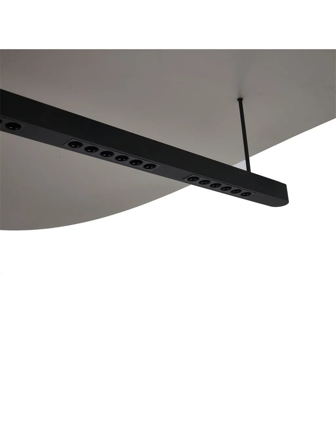 Gracias a su sistema de suspensión mediante cables, permite ajustar la altura según las necesidades del espacio, siendo ideal para instalar sobre mesas de comedor, barras o islas de cocina.