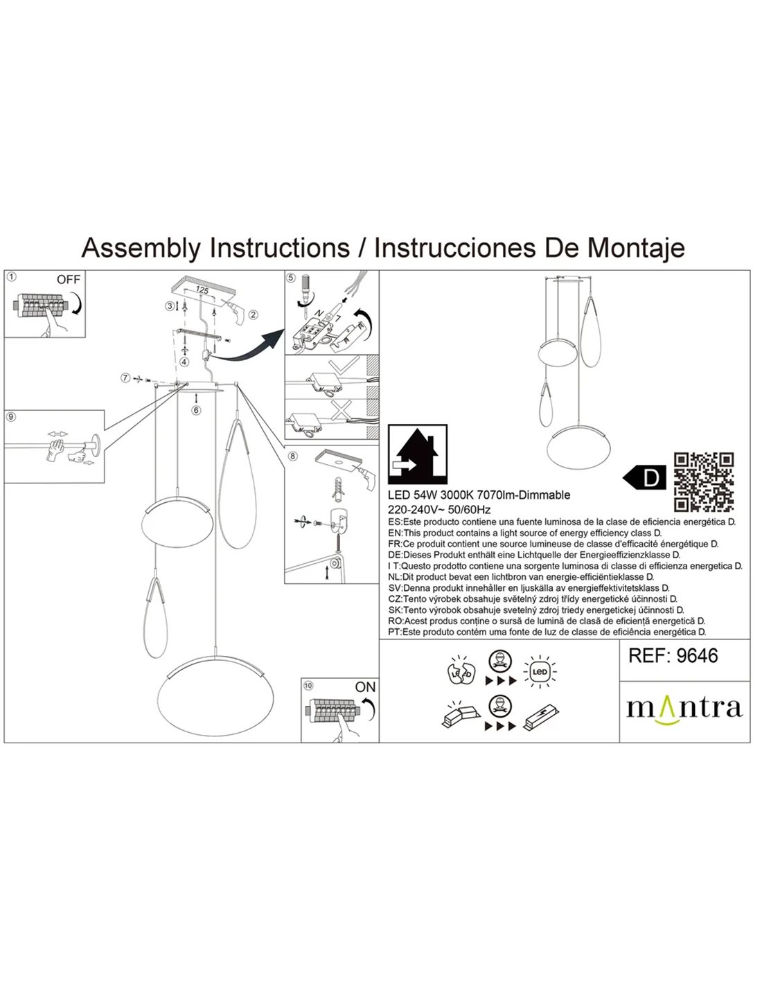 Lámpara colgante LED 40W dorada 3 luces OASIS, 3000K regulable TRIAC 1400Lm