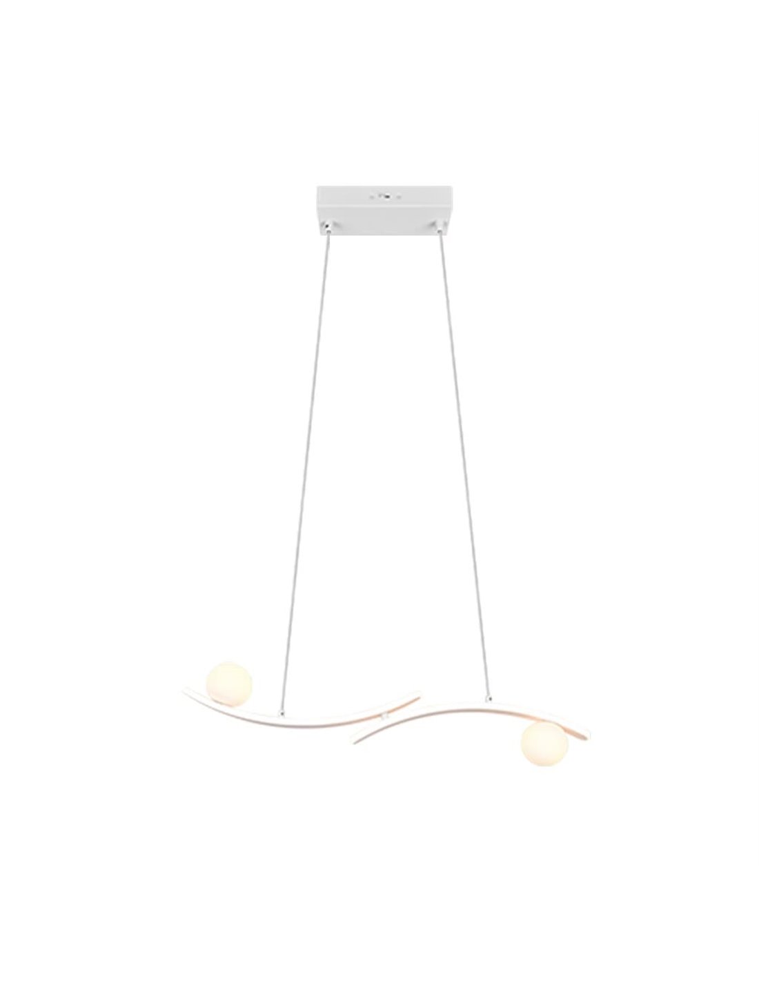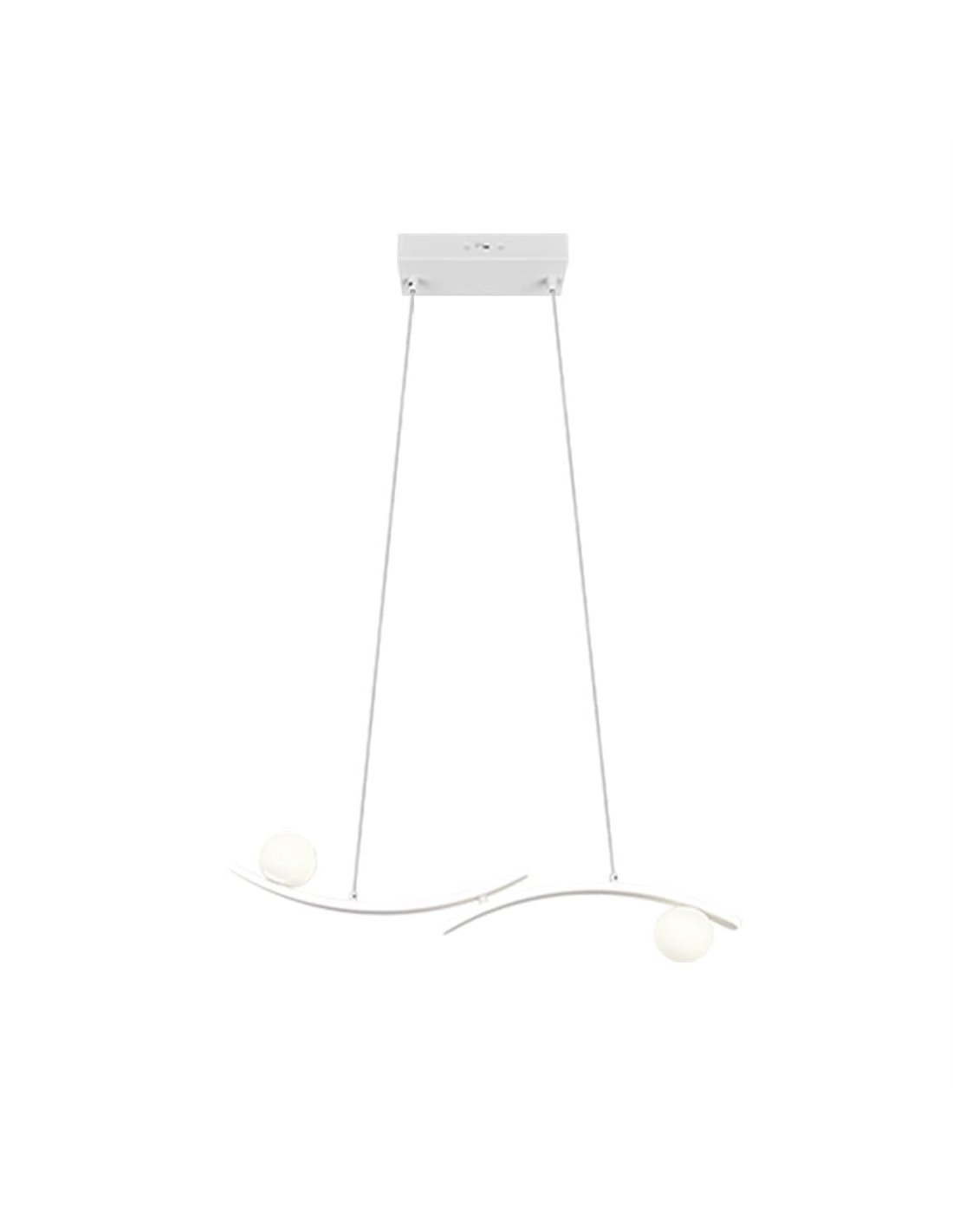 La lámpara colgante LED NAPOLI destaca por su diseño escultórico con líneas curvas y dos esferas decorativas, ofreciendo una solución de iluminación interior con fuerte valor estético. Su acabado en blanco facilita la integración en comedores, salones y espacios modernos donde se busca una luminaria decorativa con tecnología LED integrada.