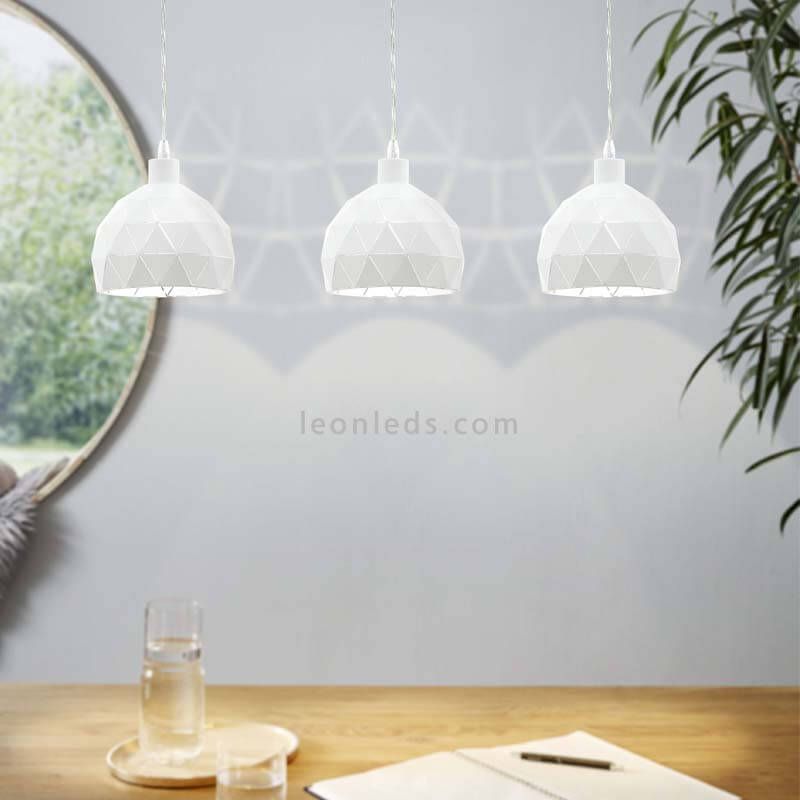La Lámpara colgante Roccaforte blanca 3 pantallas de Eglo Iluminación es la mejor opción para ti si estás buscando una lámpara elegante de color blanco con inspiración vintage y moderna.