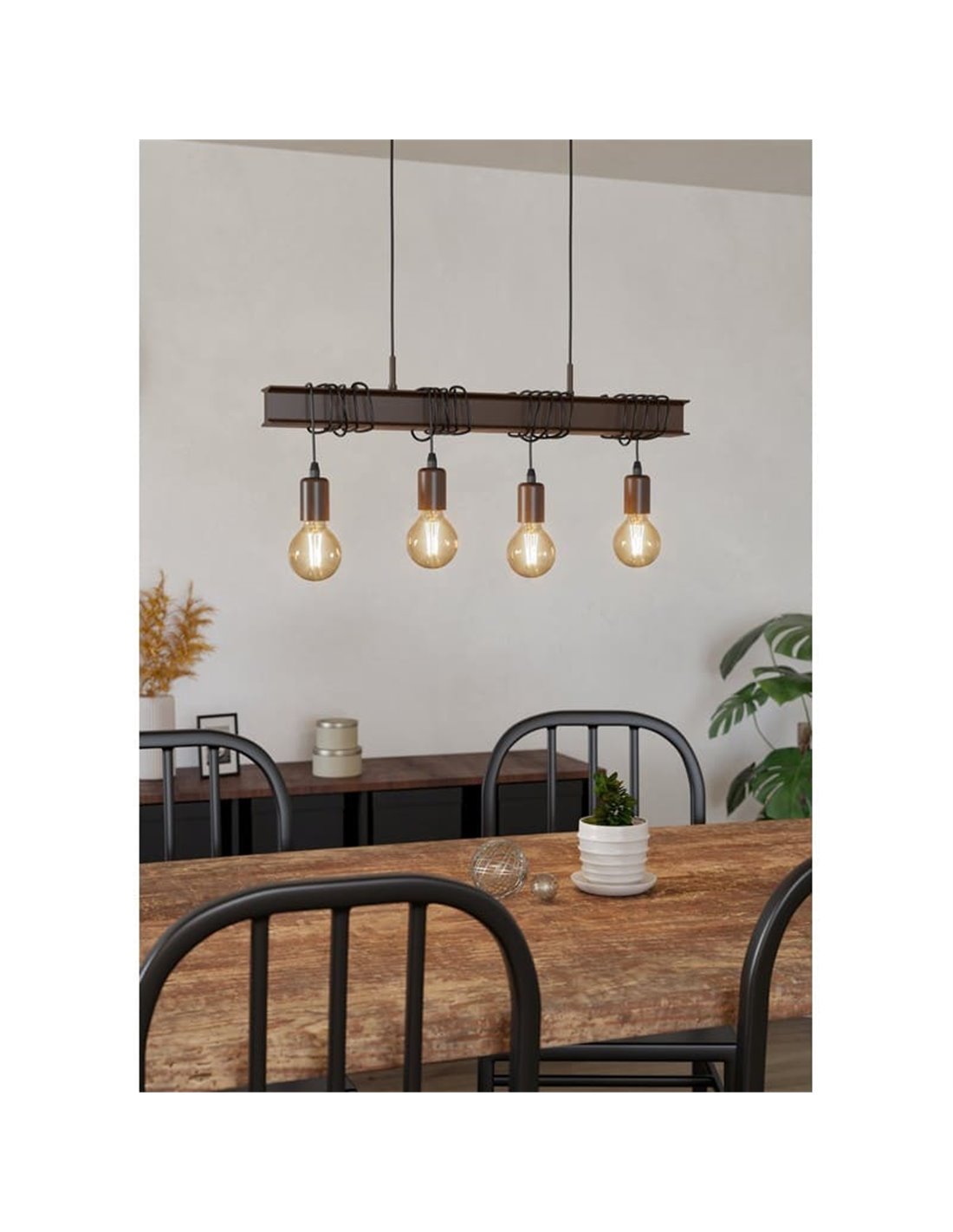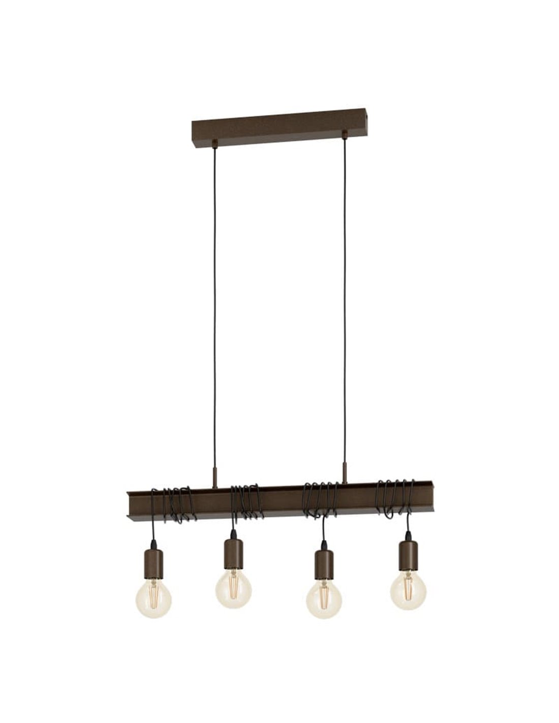 La Lámpara Colgante TOWNSHEND 4 de Eglo combina una viga de metal marrón envejecido con cuatro portalámparas ajustables que puedes adaptar fácilmente a diferentes alturas. Su estilo industrial es perfecto para interiores contemporáneos.