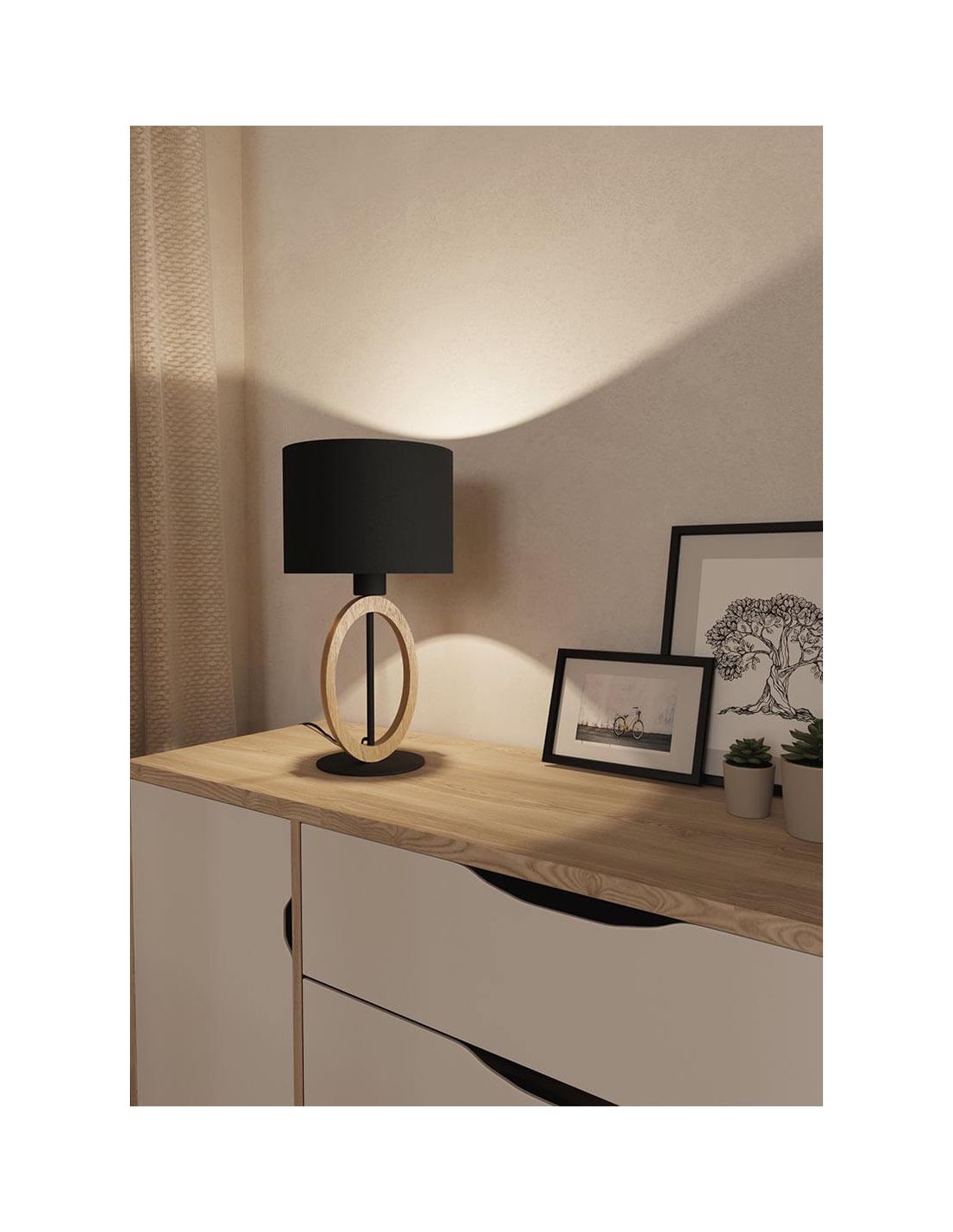 La Lámpara de Mesa BASILDON 1 es una elegante combinación de materiales de alta calidad y diseño minimalista, perfecta para quienes buscan añadir un toque moderno y natural a su hogar. Con una base robusta de metal negro y un elemento decorativo de madera de caucho en color natural, esta lámpara se adapta a una variedad de estilos de decoración.
