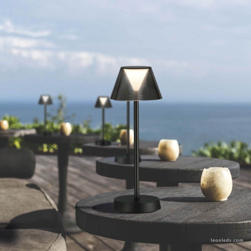 Con esta nueva Lámpara de mesa LED para exterior con batería de la nueva colección Asahi de ACB Iluminación puedes iluminar una mesa exterior sin necesidad de realizar ninguna instalación, tan solo debemos cargar la batería para que los 7 watios de potencia y los 380Lm nos proporcionen luz cálida 3000K durante mas de 7 horas. Ademas la intensidad de luz se puede regular en 3 niveles para crear un ambiente mas intimo bajo la luz de la luna, una Sobremesa LED para exterior indispensable en cualquier casa, hotel o restaurante.