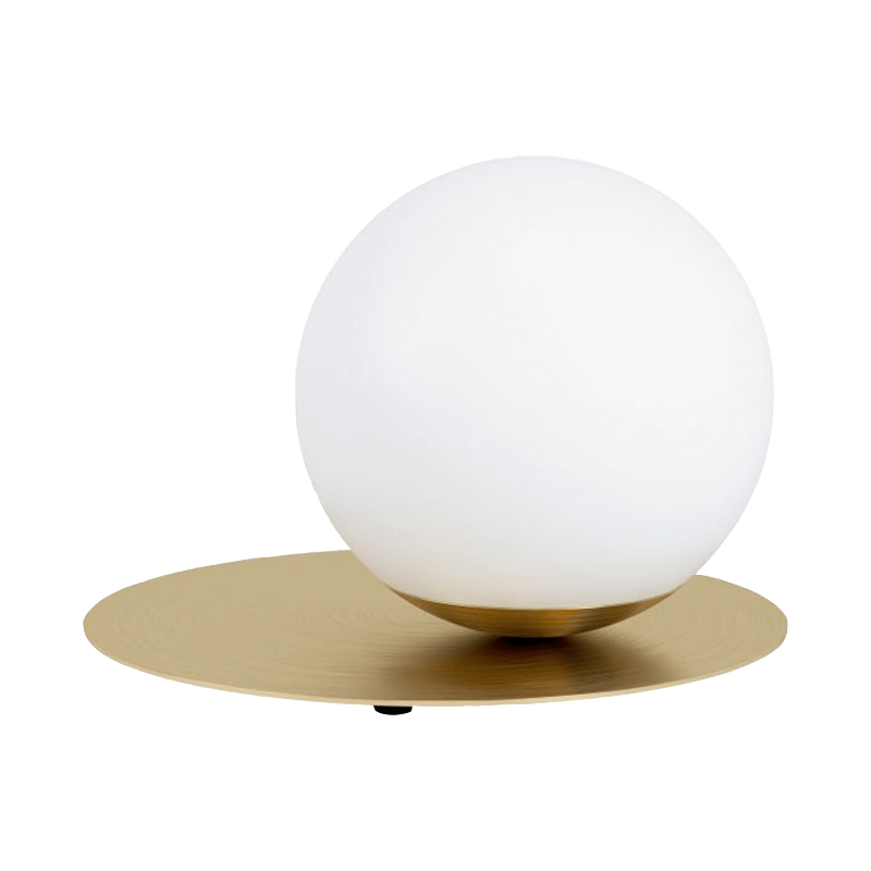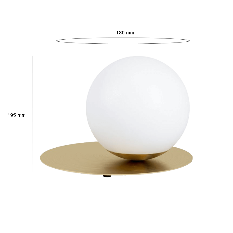 La lámpara de mesa Arenales presenta una estructura formada por una esfera de vidrio opalino mate y un disco redondo de metal en latón cepillado. Este artículo dota de un nuevo toque sofisticado a la estancia donde se ubique. En cuanto a las medidas destacan una altura de 19,5 cm, 18 cm de diámetro con un diámetro del enchufe de unos 27,5 cm y un peso de 1,5 kg.