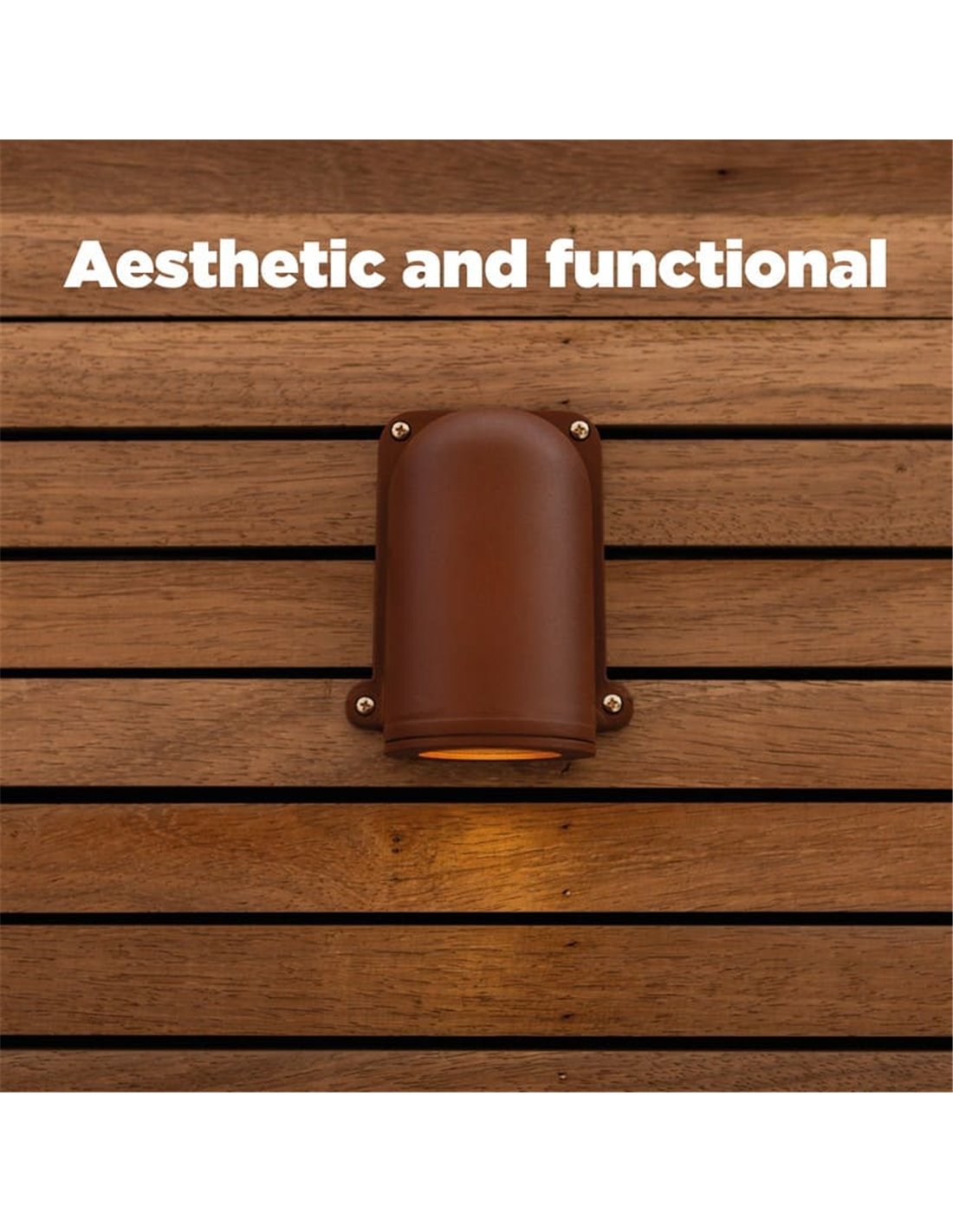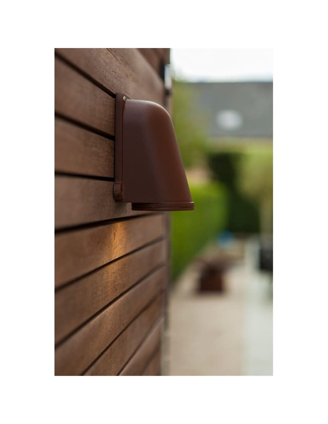 La lámpara de pared LED para exterior ANCOR de Lutec combina un diseño rústico con materiales de alta calidad, ofreciendo una solución de iluminación duradera y estética para sus espacios al aire libre. Su acabado en óxido mate aporta carácter y elegancia a cualquier fachada o jardín.