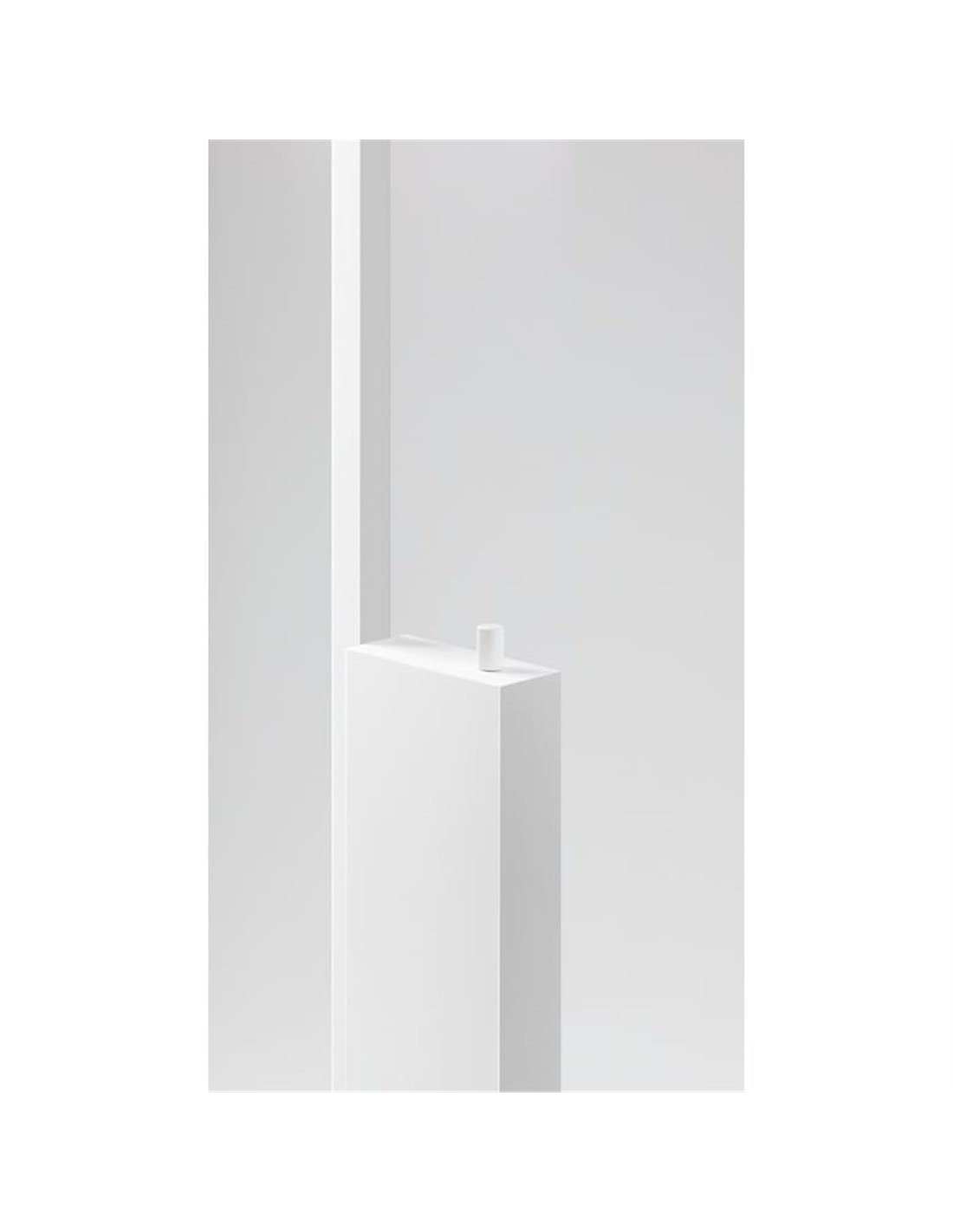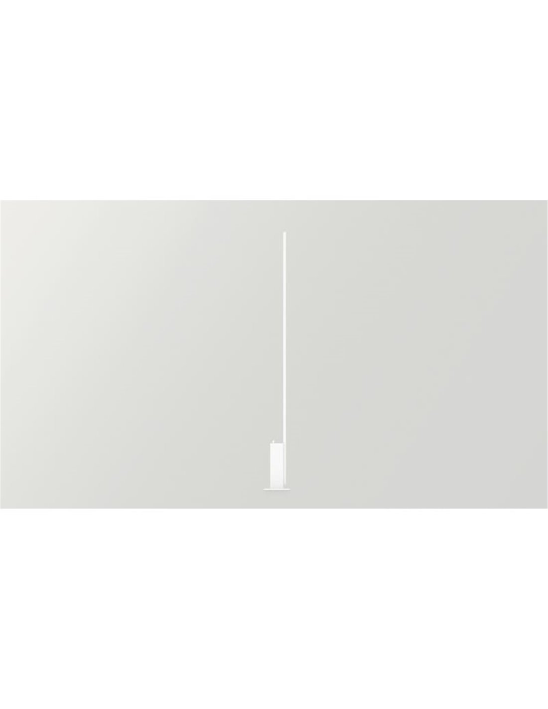 La lámpara de pie STANDUP en color blanco, con altura de 1.99 m, ofrece luz indirecta regulable en intensidad (DIM On Board) y temperaturas de color de 2700K y 3000K, con un flujo luminoso de 4210Lm a 4320Lm.